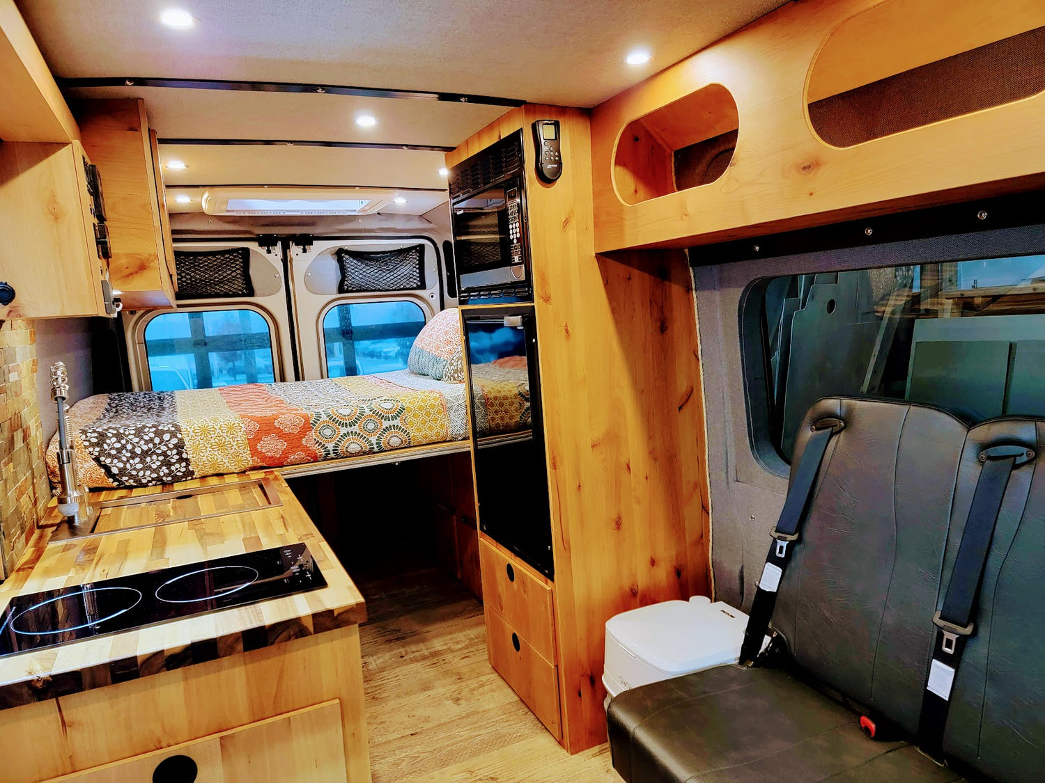 - Large skylight over the bed for looking at the moon and stars, with bug screen and night shade built in.