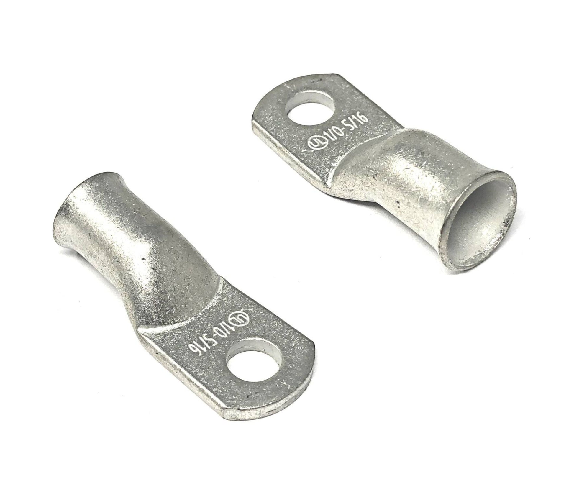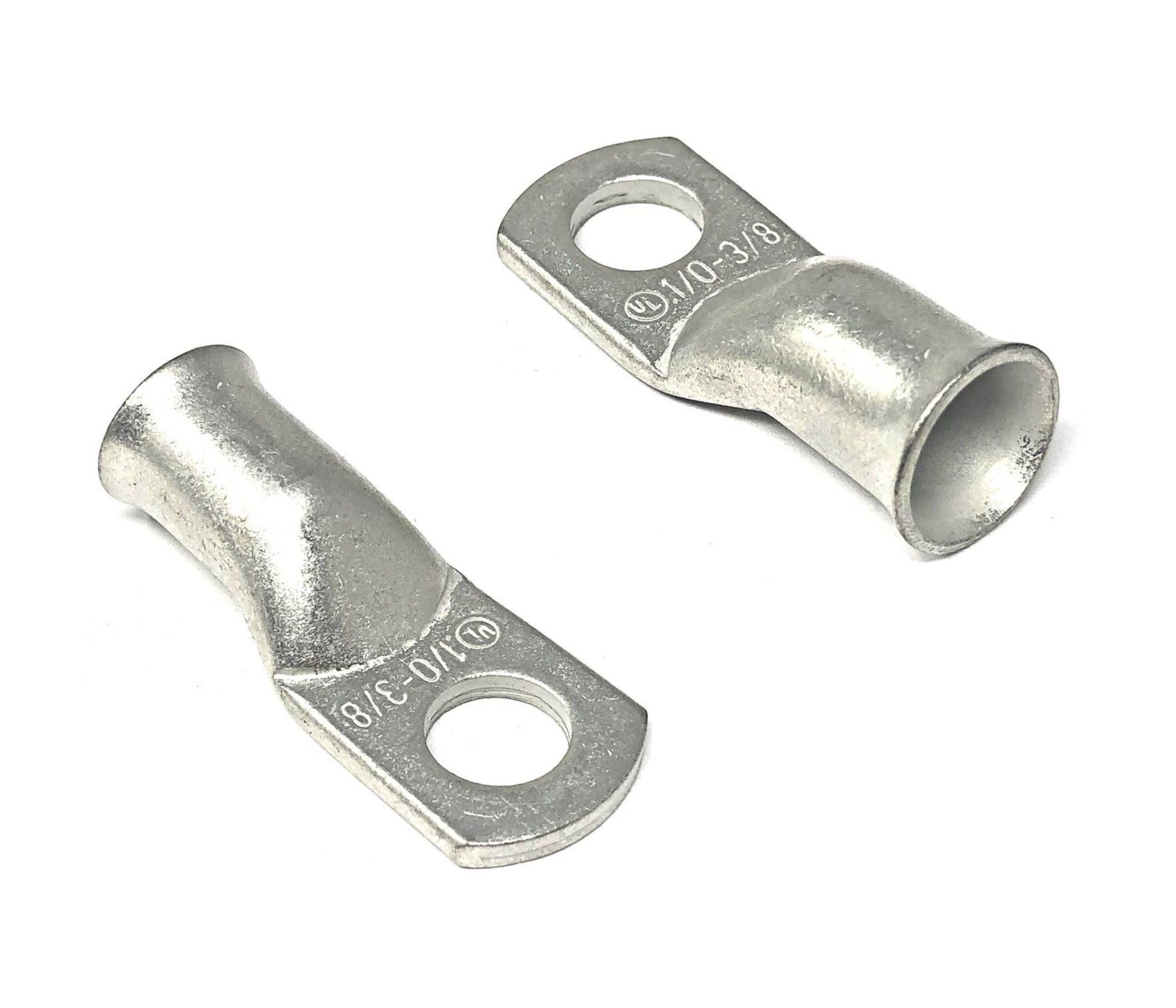 Windy Nation's 1/0 gauge cable lug connector ring terminals are heavy-duty, pure copper electrical connectors designed for high amperage applications. The tin-coated copper finish is ideal for marine and humid environments because the tin coating protects the copper cable lug from oxidation and corroding. Both lug finishes are available in 3/8" and 5/16".