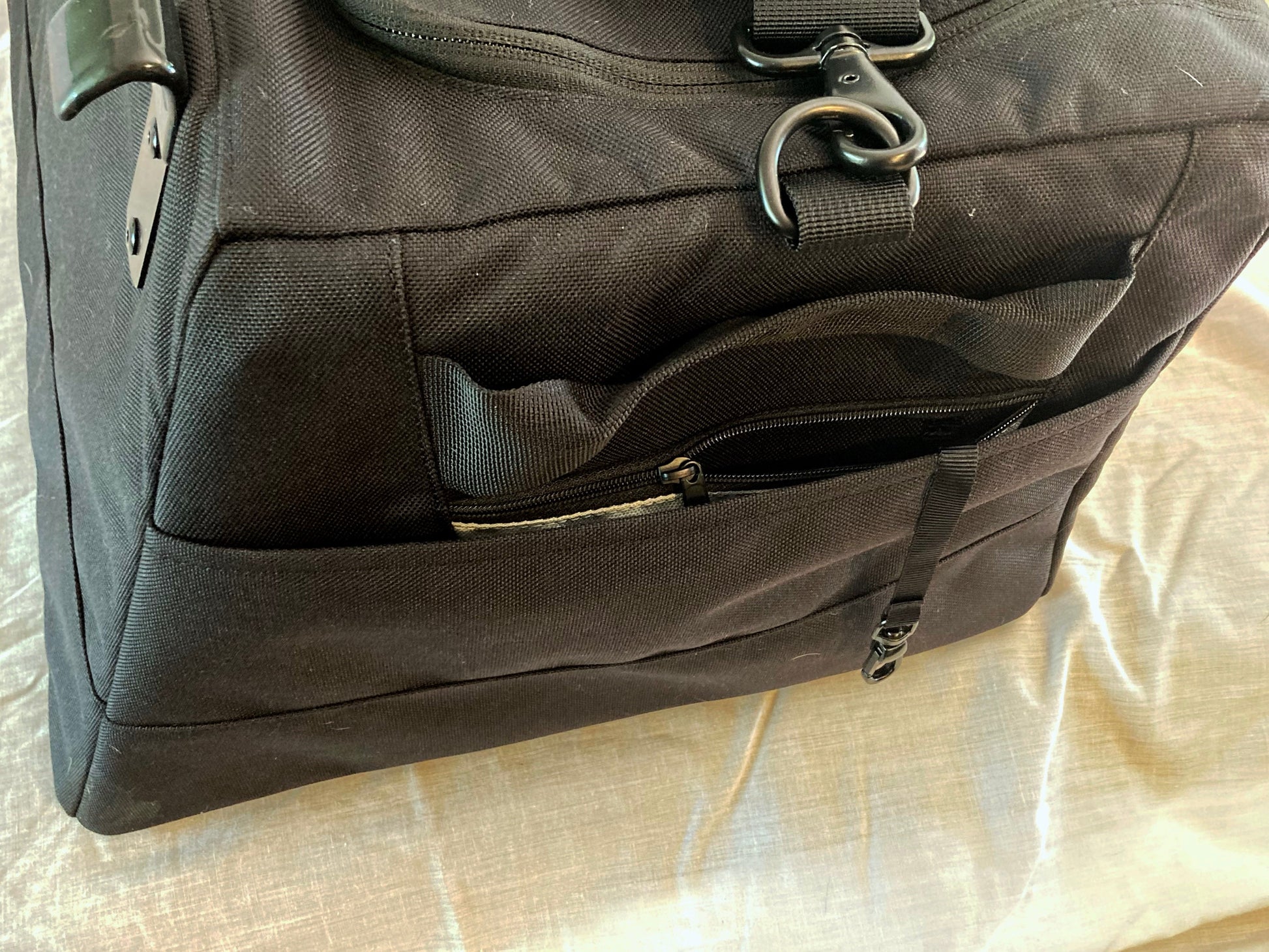 The 18" bag is a great medium sized travel bag. These bags function like a removable cabinet. They can be partially unzipped to reveal the inner pockets, including the fully zippered mesh pocket. Two side stuff pockets allow you to easily access items that you need more frequently and a zippered side pocket is perfect for a cell phone and features a key leash. The bag has side handles for easy carrying and removable padded shoulder strap featuring metal hardware that is easy to clip and unclip.
