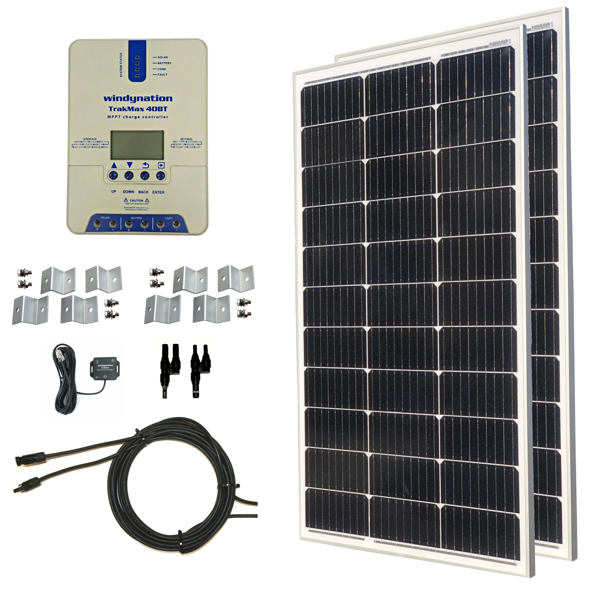 Start producing free, clean, power from the sun with the Windy Nation 200-Watt Monocrystalline Solar Panel Kit with TrakMax MPPT Charge Controller. The 200-Watt MPPT Kit comes with everything you need to get started -