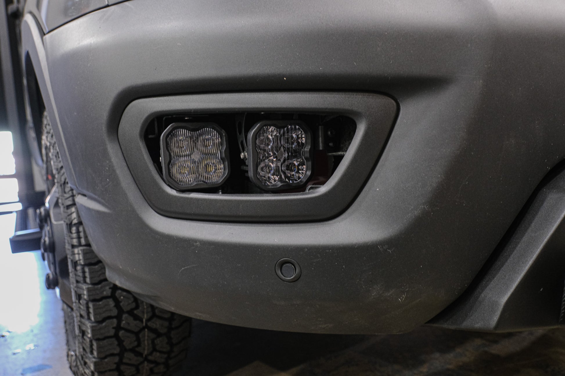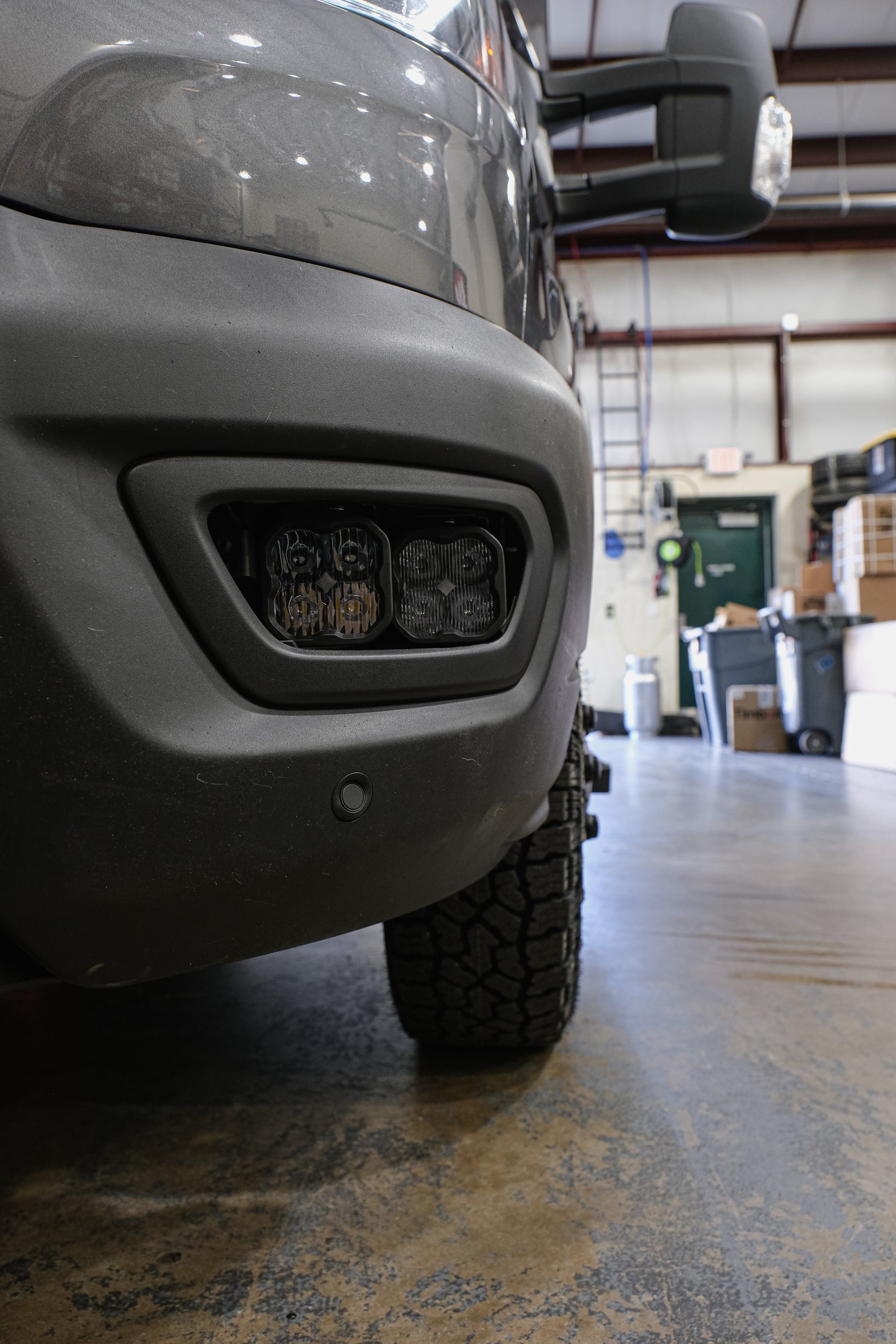 Replace your stock fog lights with upgraded fog lights to drastically improve vision in inclement weather. The Baja Squadron fog lights are SAE-compliant road-legal. The mounting brackets are precision-engineered, laser-cut steel brackets, and powder coated with textured black from Van Made Gear. This full drop-in kit, comes preassembled so that you can install it in about 15 minutes. It mounts directly to existing holes on 2020+ Transit factory bumpers with or without fog lights, using factory hardware. Our full kit requires no modifications and allows you to keep the factory trim bezel, fog lights, and bulb in case you want to go back to stock.