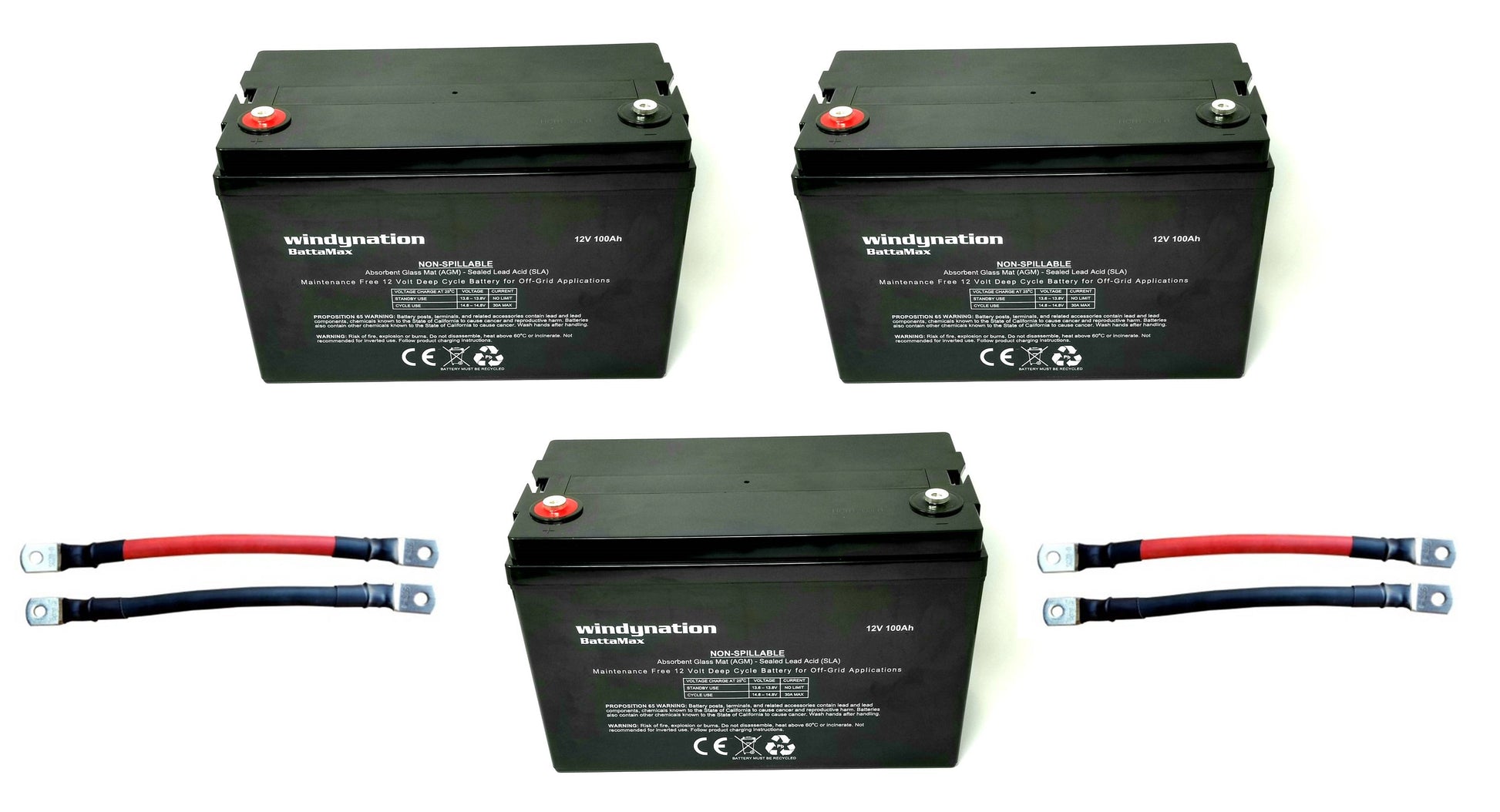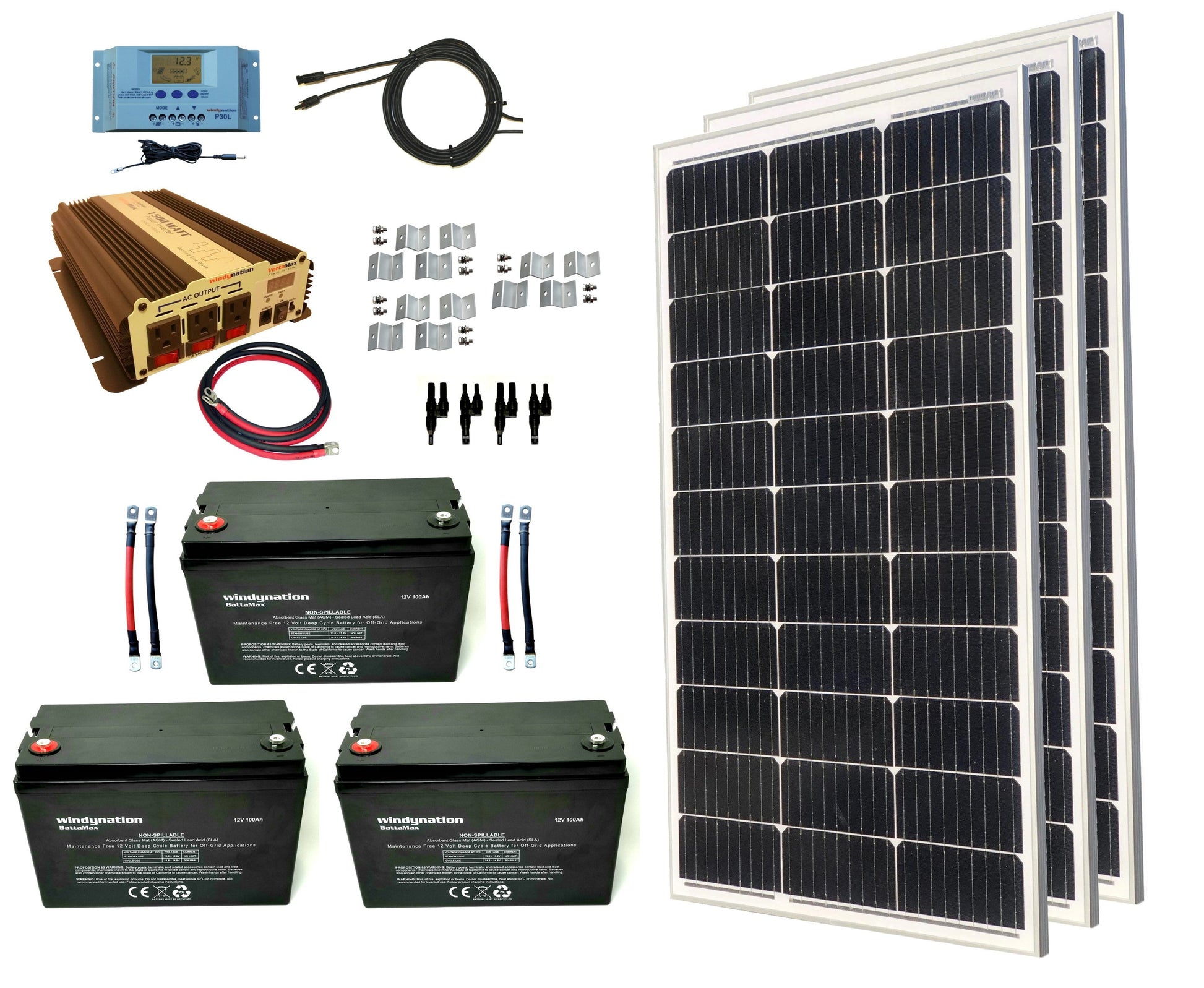 Use the drop-down tab options to add an inverter, battery, or both to your 300-Watt Solar Panel Kit. The WindyNation 1500-Watt (3000-Watt surge) vertaMax DC to AC Power inverter includes 2 pieces of 3 ft. 2 Gauge Battery Cables. The WindyNation Battery is a 100-amp hour AGM Deep Cycle 12-Volt BattaMax Battery. Refer to the product photos for additional technical information (depending on your selection). The WindyNation 300-Watt Solar Panel Charging Kit is the ideal solution for providing backup power or off-grid power when you need it!