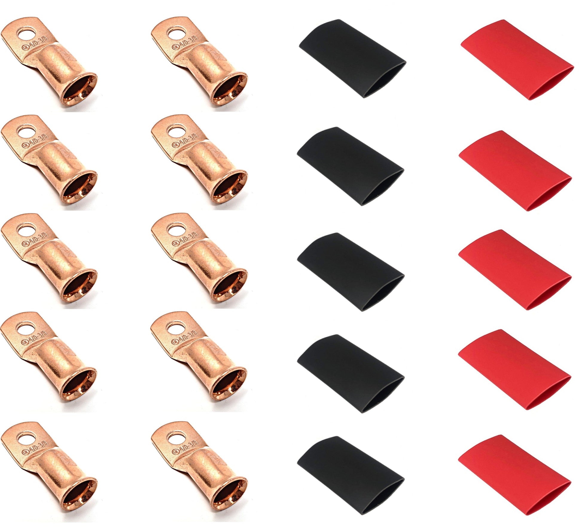- Includes pure copper cable lugs + black & red heavy-duty dual wall adhesive lined heat shrink tubing. Package includes 1.5 inches of heat shrink tubing per cable lug (half black and half red)