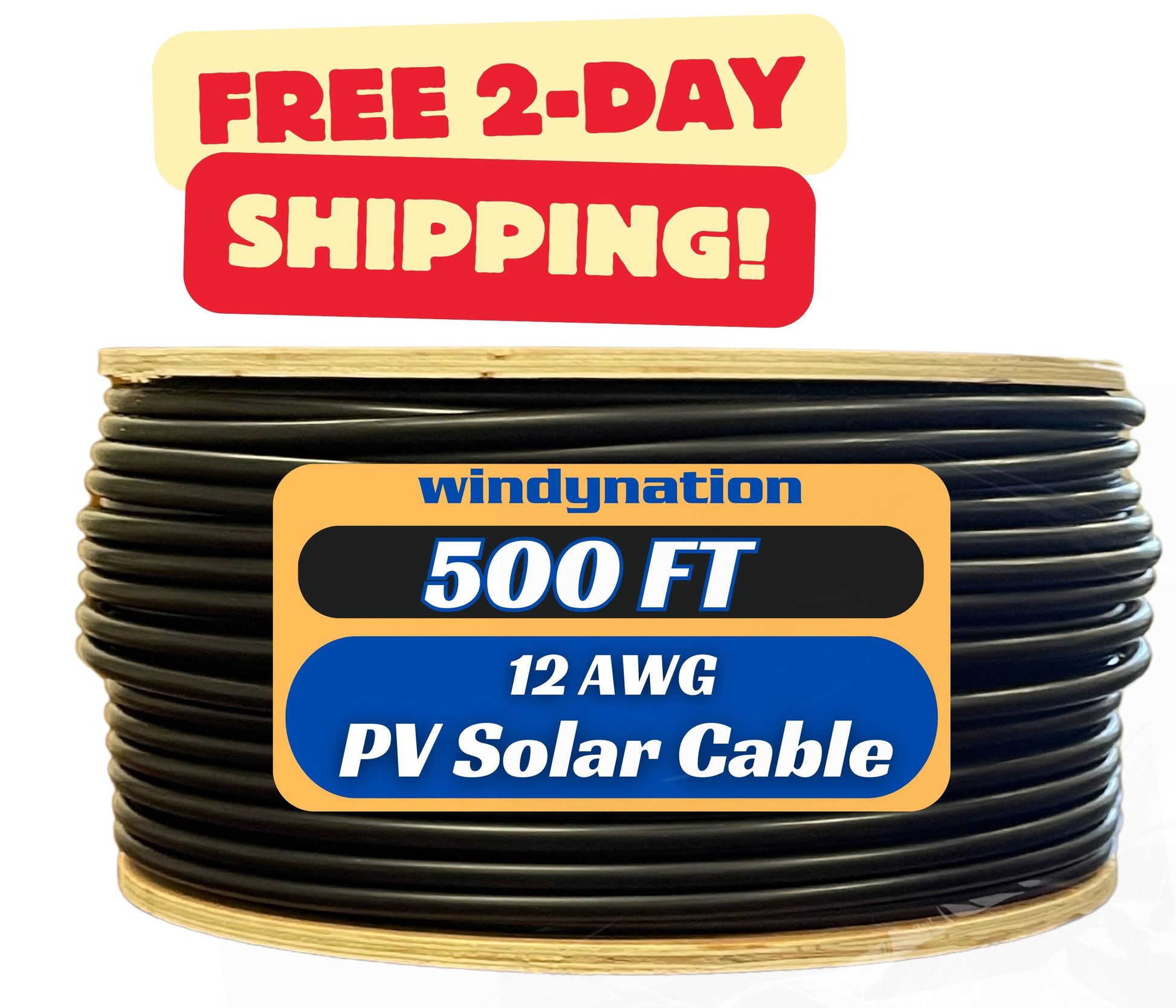 500 Foot Spool 12 Gauge 12 AWG Solar Panel Extension Cable Wire Black or Red Pure Copper