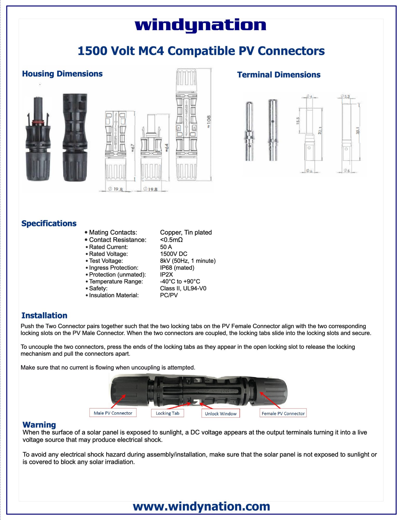 - Includes 1 piece male solar connector and 1 piece female solar connector