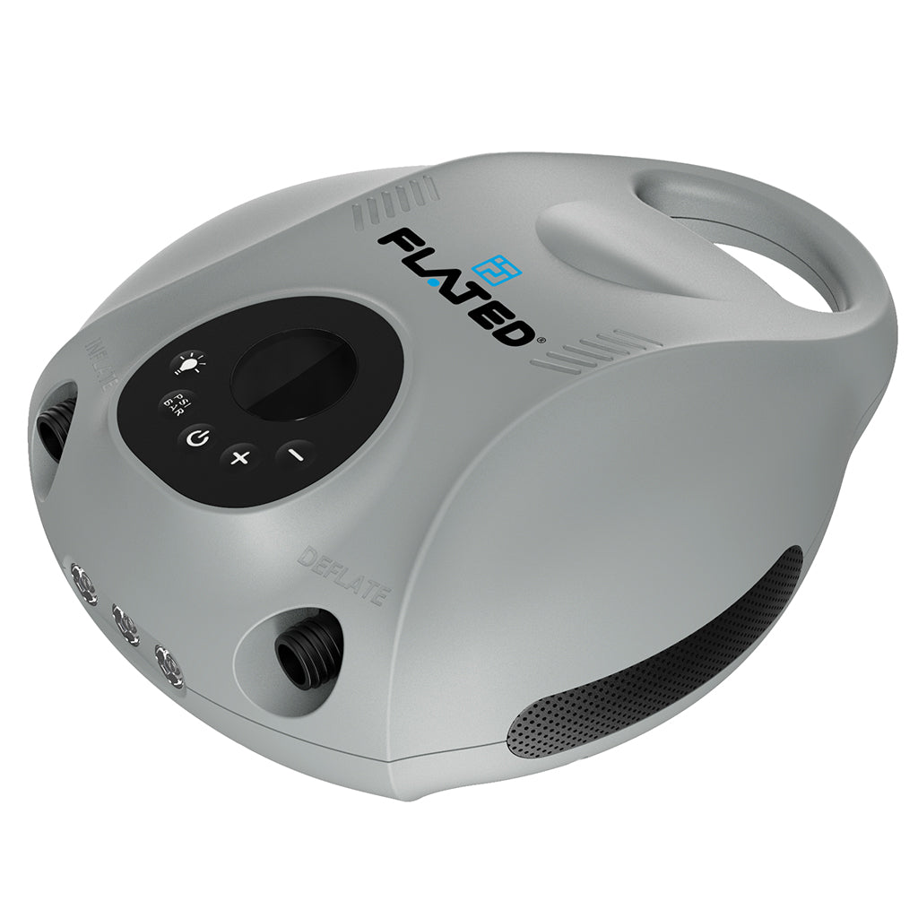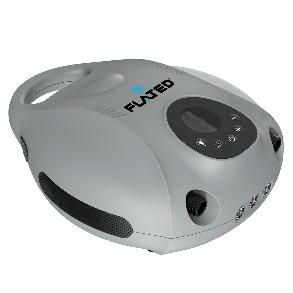 Unleash the power of effortless inflation with the intelligent FLATED Battery Pumpli. This versatile air pump automatically inflates to your exact PSI, powers up to 4 FLATED products on a single charge, and doubles as a power bank with built-in LED lighting. Perfect for outdoor adventures with zero guesswork.