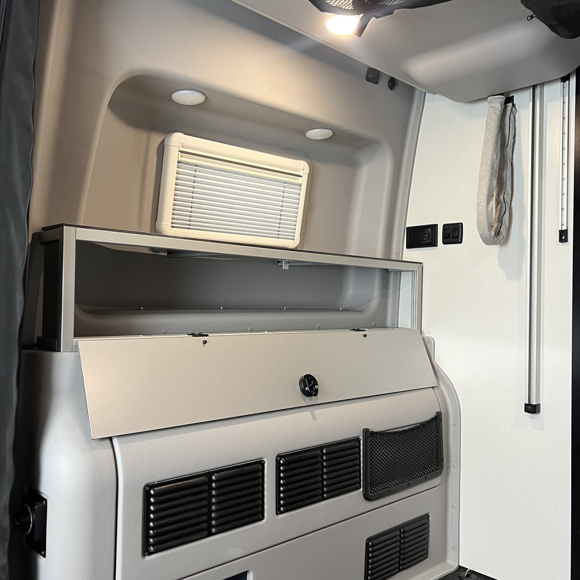 If you need more room and storage in the ENTEGRA Launch & JAYCO Terrain garage, our 10" Bed Risers are a great solution. Each bed riser has aluminum composite sliding doors. With the bed down, it allows you enough space to store your bikes and still gives you a 6′ 2″ bed length. Heavy duty, but lightweight and durable. Due to the new elevated height of your lowered bed (with these Risers), you will need our Folding Bed Step or a step stool to get in and out of bed.