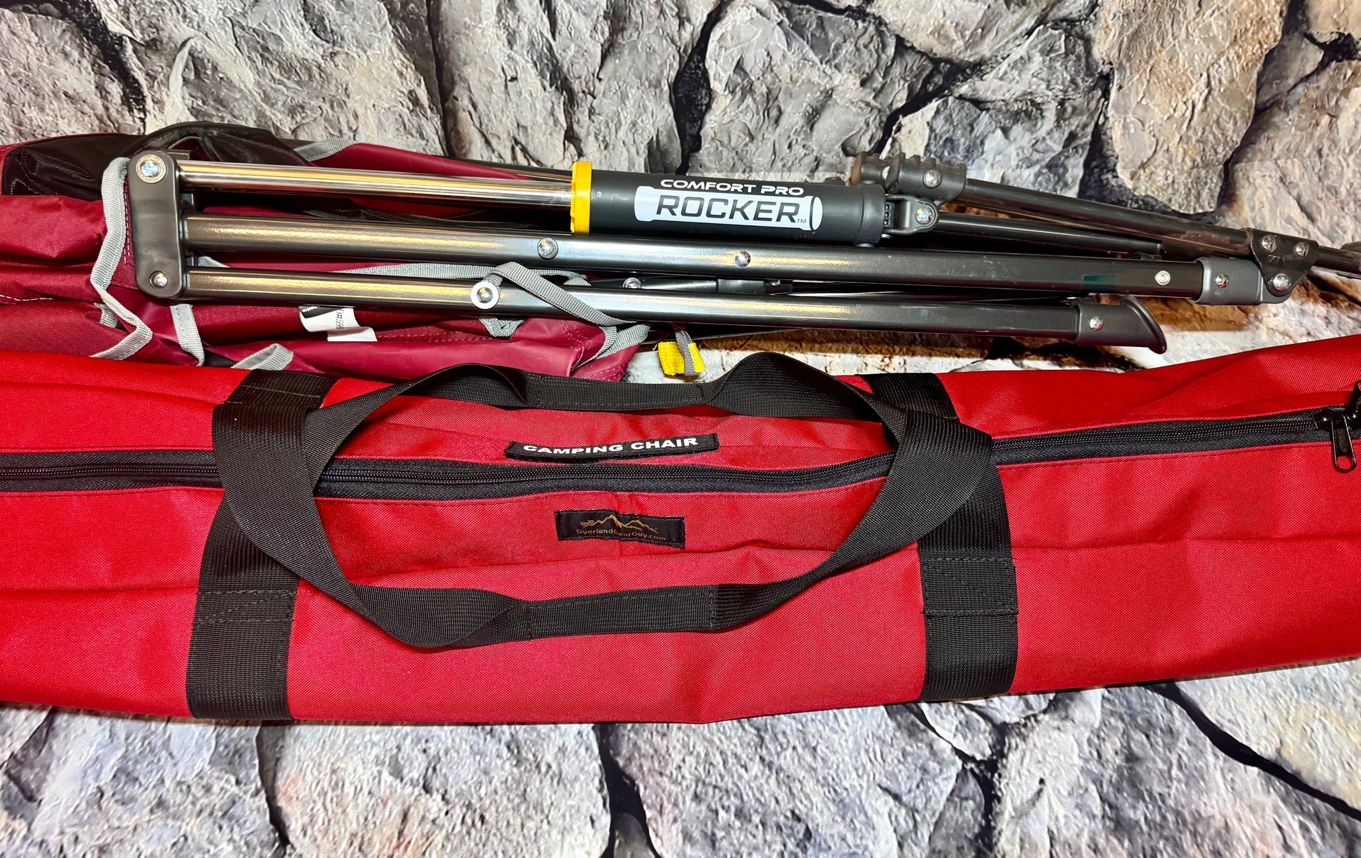 The Chair shown is The GCI Comfort Pro Rocker. Not included with Carry Bag