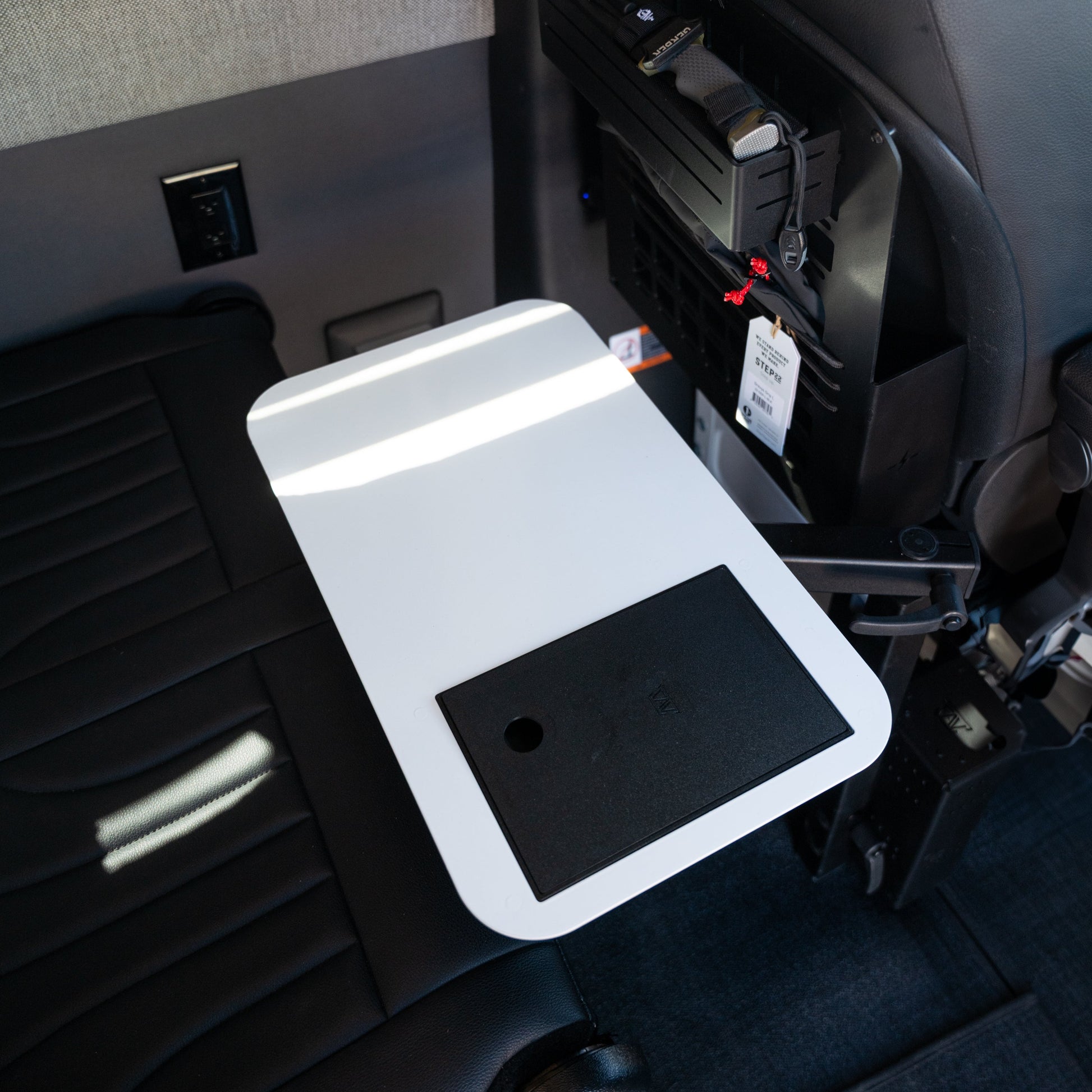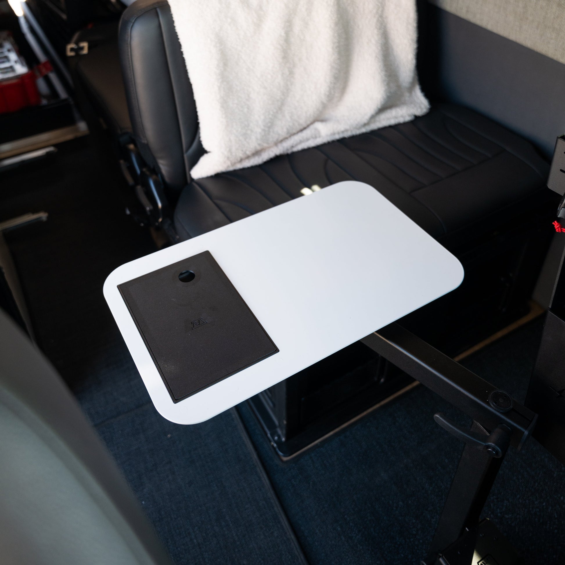 This tabletop mounts to OUR CAV TABLE SYSTEM ONLY, creating a stable, swiveling surface that tucks out of the way when not in use.