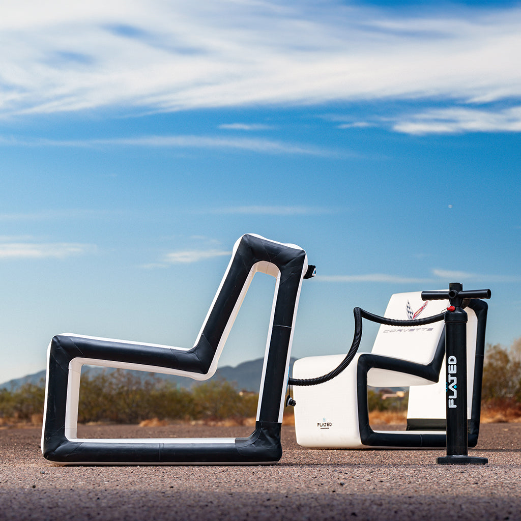 Revolutionize your “frunk-gating” game with the FLATED® Air-Exec Corvette Compact-Seats & Table Set—an inflatable seating solution designed to fit perfectly in the front trunk ("frunk") of your Corvette. This ultra-portable set includes a compact inflatable seat and matching side table, built for adventure-ready comfort wherever the road takes you. Whether you’re tailgating Corvette-style, relaxing at a campsite, hanging poolside, or chilling at the beach, this setup inflates in minutes and stows away just as fast. Engineered with rugged drop-stitch construction, it’s sturdy, lightweight, and Corvette-approved.From frunk to front-row in seconds—comfort, compacted.