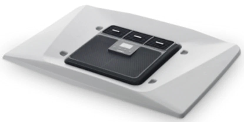 Need an RV rooftop air conditioner for your camper van? This Dometic RTX2000 12V RV Air Conditioner (6800 BTU) is a low-profile RV rooftop air conditioner with sleek, futuristic styling that offers premium comfort control and very minimal power draw. The third-generation Dometic CoolAir roof air conditioner offers more cooling performance, even while consuming less energy than its predecessor. That's because the Dometic RTX2000 uses a variable-speed inverter compressor, giving excellent cooling performance and amazingly efficient and quiet operation.