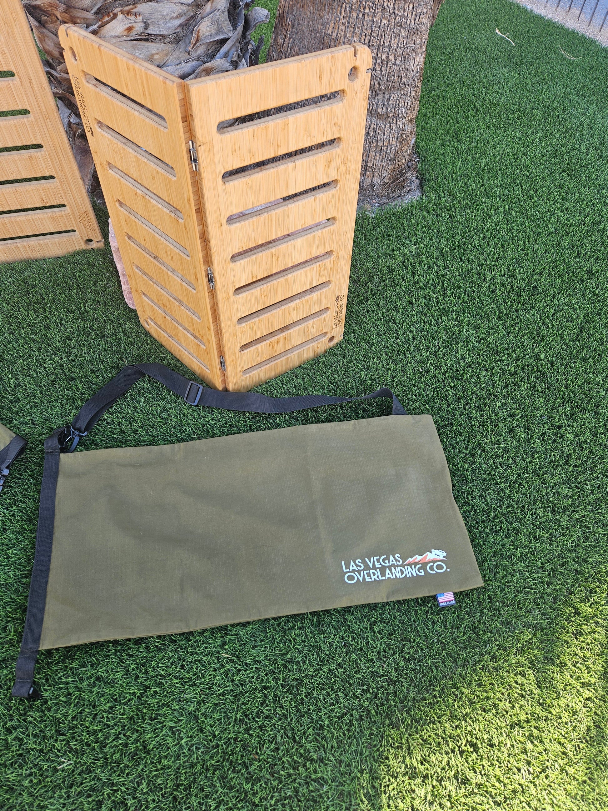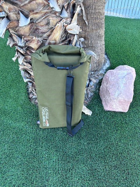 Conveniently stow away your double down shower floor and keep it looking its best! This carrying bag is constructed using upcycled 23Zero durable 300D polyester with their proprietary backing, and has a webbing strap that is adjustable for carrying over the shoulder or by hand. The 1.5" buckles will keep your floor secure and ready for any adventure. A corner grommet is installed to ensure your bag can stay mildew free, even when putting a damp shower floor inside.