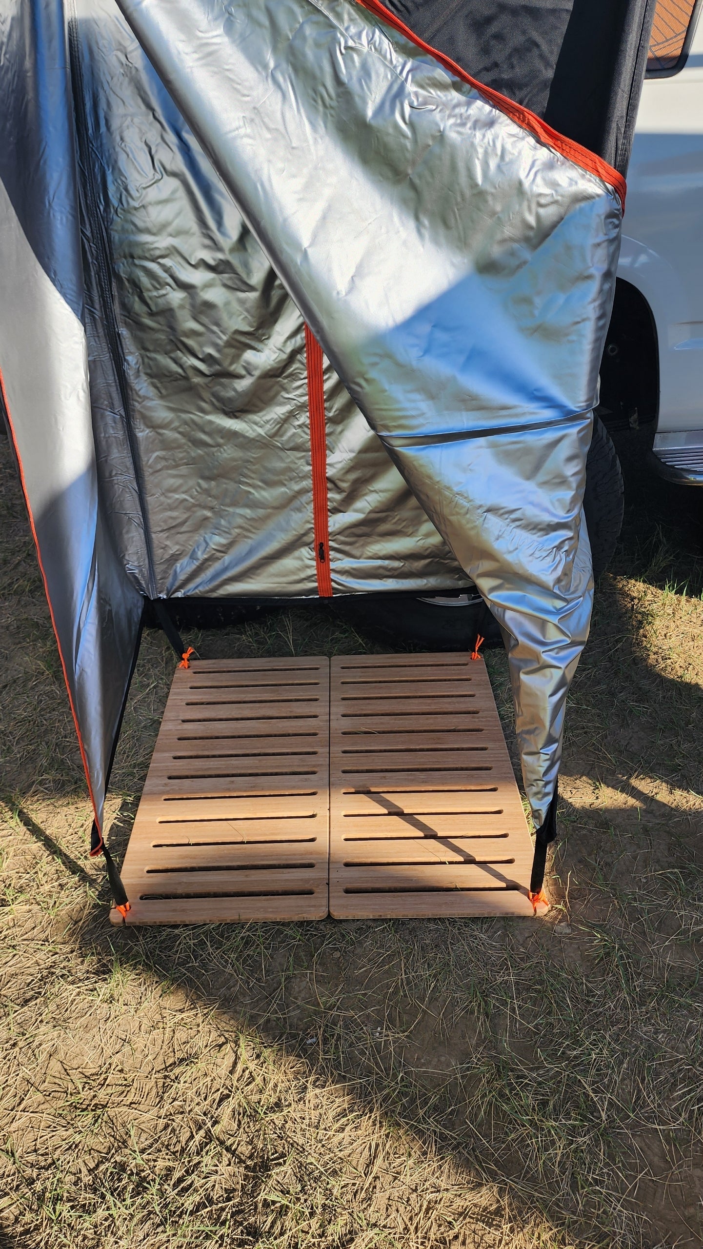 Tired of standing in the mud to get clean? With the Double Down Shower Floor, you can stake your shower enclosure and get a little lift off that muddy ground for a shower you don't need to shower after!