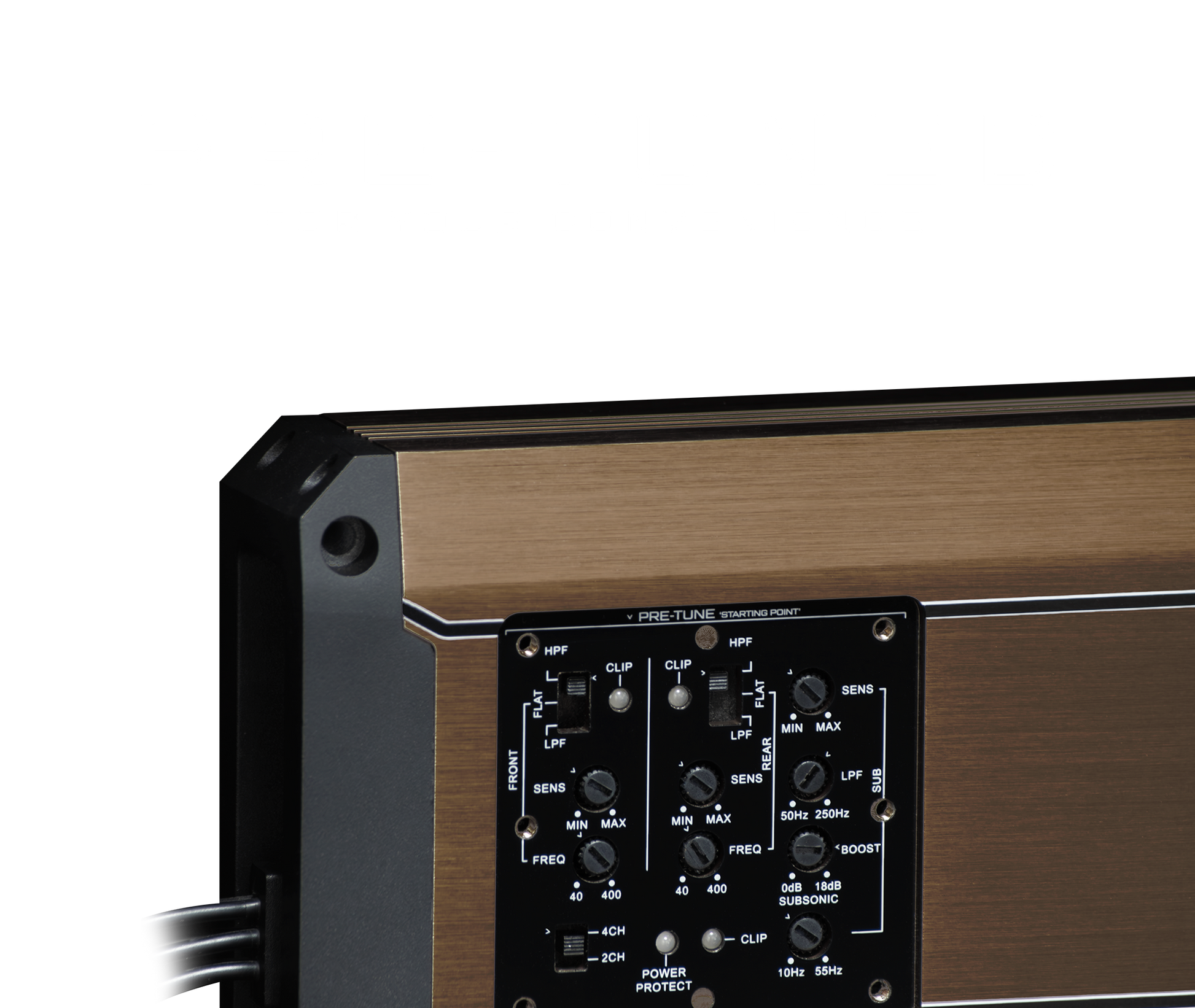 - Crossover Range: HPF: 40-400Hz (F&R CHs) LPF: 50-250Hz (SUB)