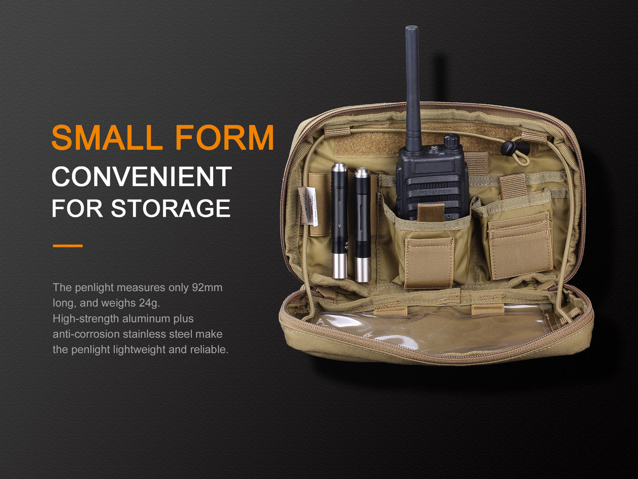 The Fenix LD02 V2.0 is a first-rate EDC penlight, featuring 70 Lumens of warm white light and 200mW UV light. This improved model boasts a petite size of 3.6"x0.5" and weighs just 0.84 ounces. Its Cree XQ-E HI LED provides great color rendering for preserving night vision, as well as accurate color rendering. With one AAA battery, it powers up to 75 hours at 1 Lumen. The stainless steel tail switch manages activation and increases output, and the IP68-rated construction withstands submersion up to 6.5 feet. Get this remarkable EDC penlight now!