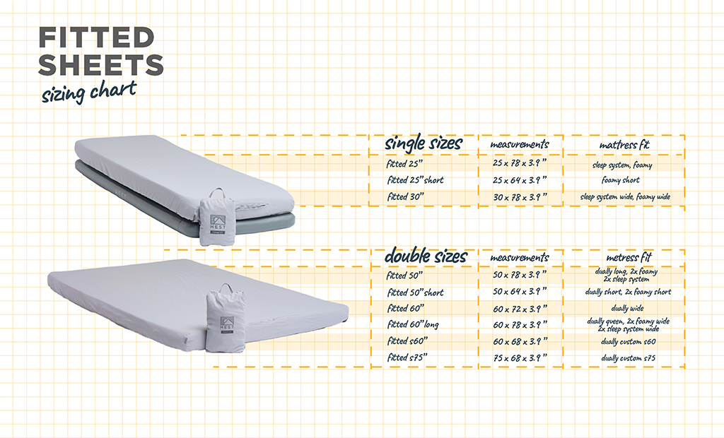 • Fitted 60" Long: Fits Dually Queen, Sleep System Wide x 2, Foamy Wide x 2