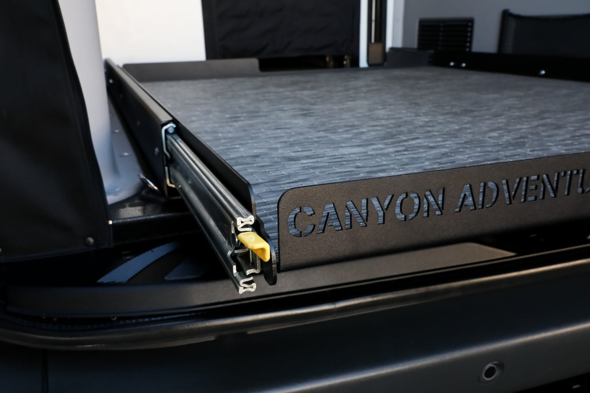 You can even turn it into a deck with our 600lb heavy duty Accuride Slides. Just add an optional Inhabit Deck Mat, GLSS™, Bamboo Table Top and you just expanded your living space by over 4'.