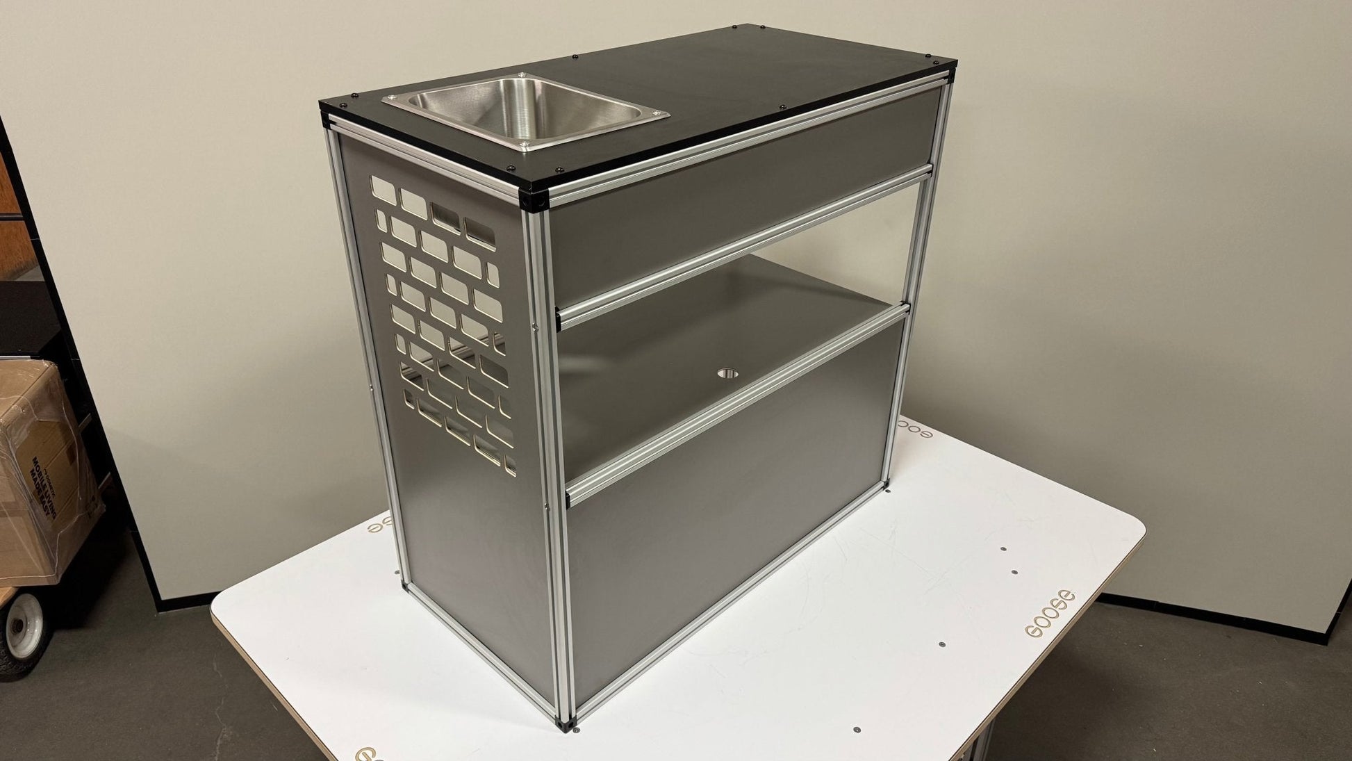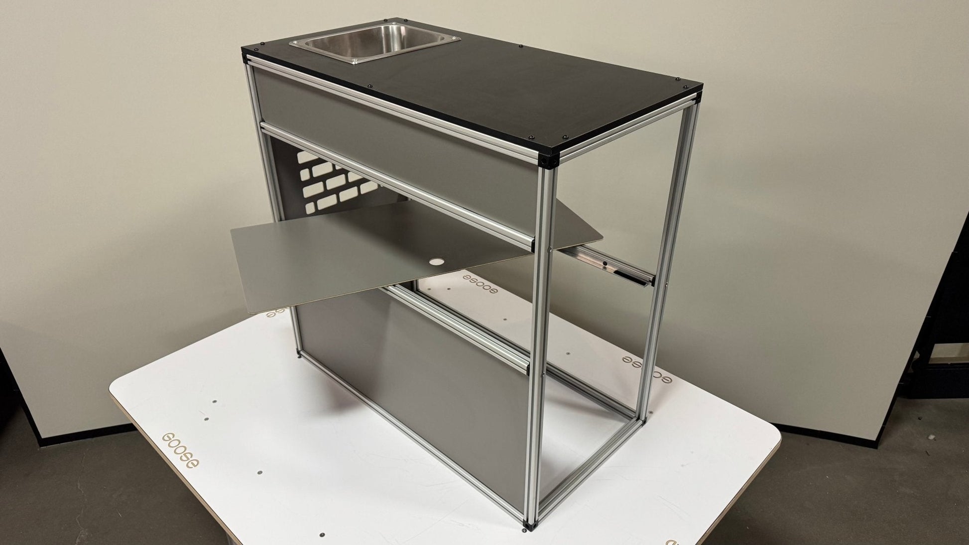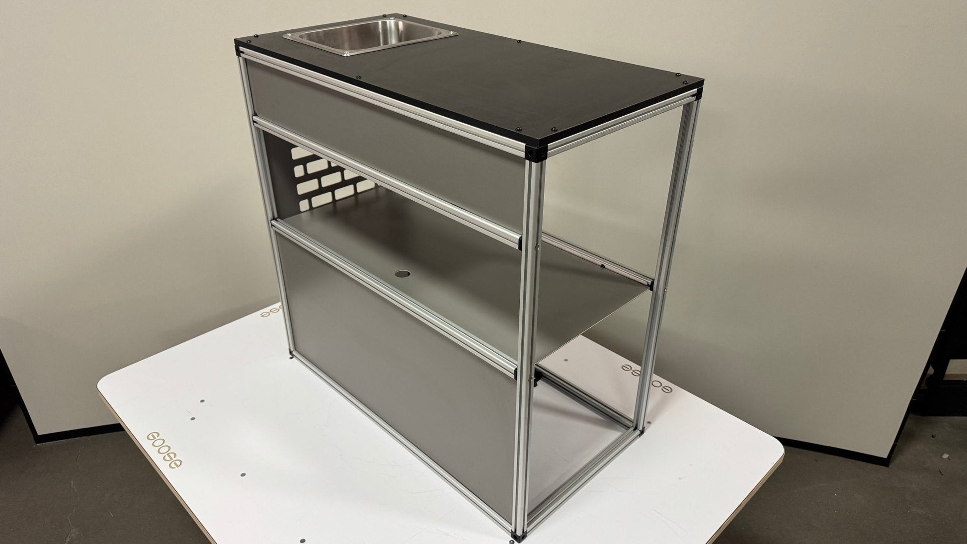 The Goose Gear Camper System Front Sink and Storage Utility Module is the designed to be installed on the passenger side of the vehicle and provide you the perfect interior sink station.