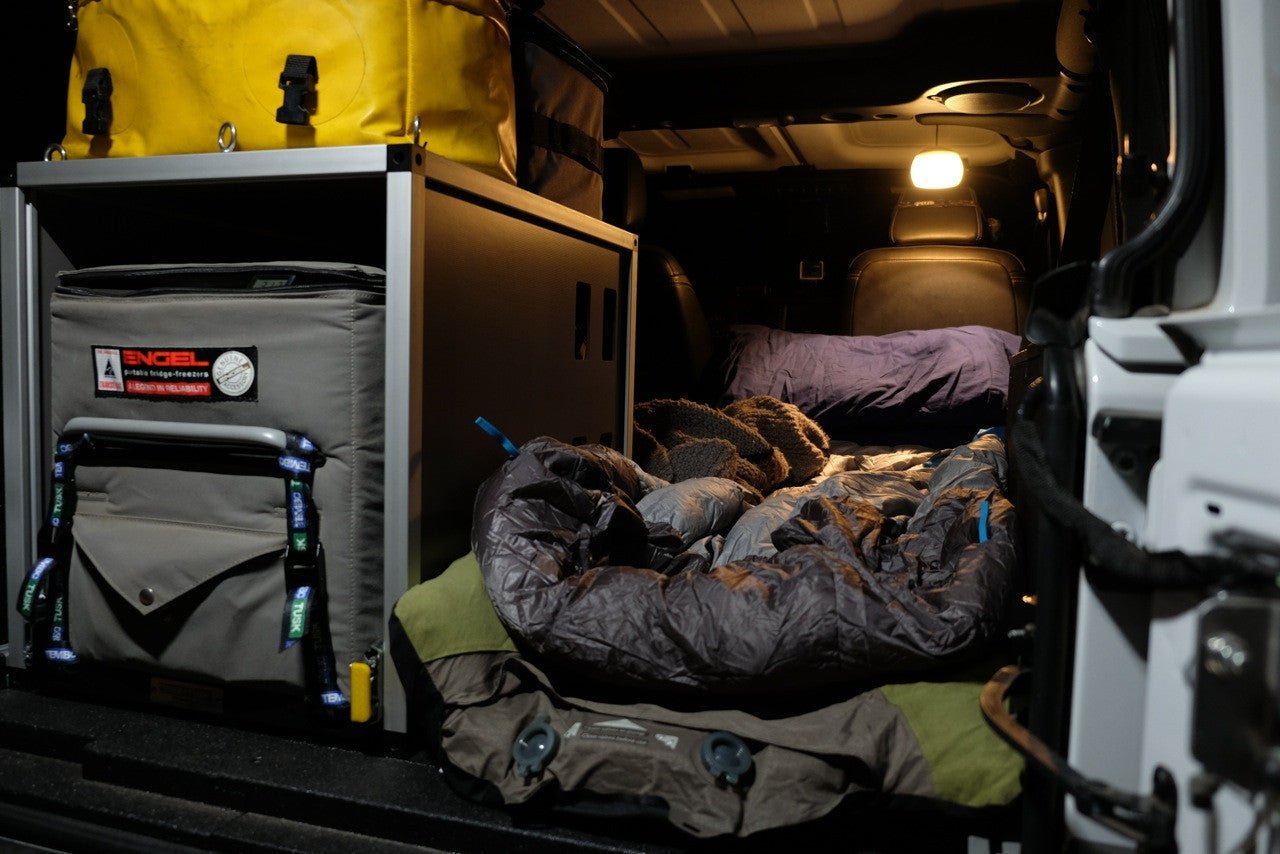 Jeep Wrangler JKU Plate System is required to install the Seat Delete Plate System. JKU Sleep Platforms connect to the rear Plate System and continue forward to just behind the front row seats(s).