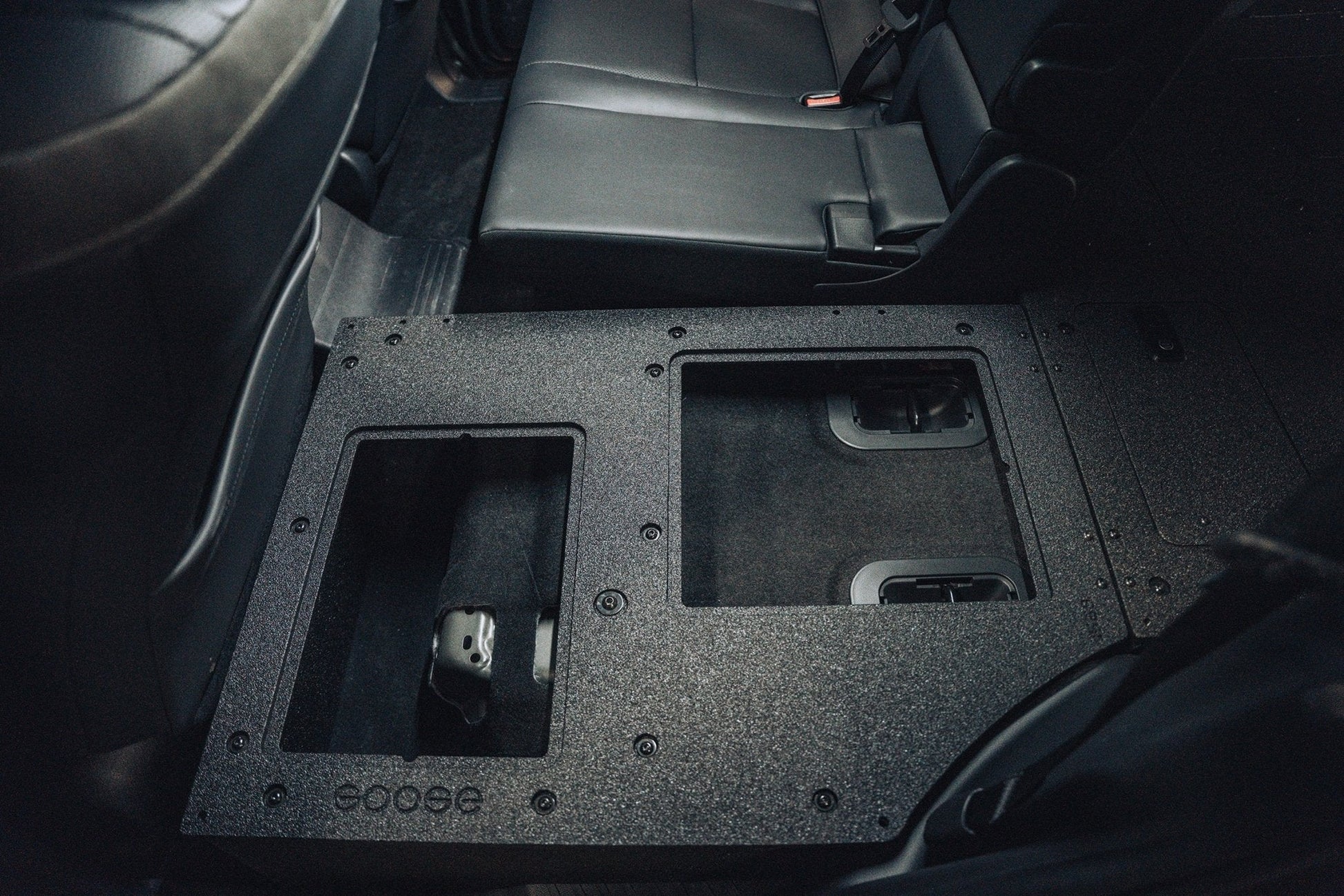 Featuring 2 hatches to access the storage space below the seat delete. Providing a secure and stable place to strap your gear to or for sleeping in your rig. The length of the rear plate with the second row deletes measures 6'-1-½" long. We also offer an optional sleep platform extension that takes the platform to a full 6'-10" long, just over 2 meters for the taller folks. You can find the optional pillow extension here.