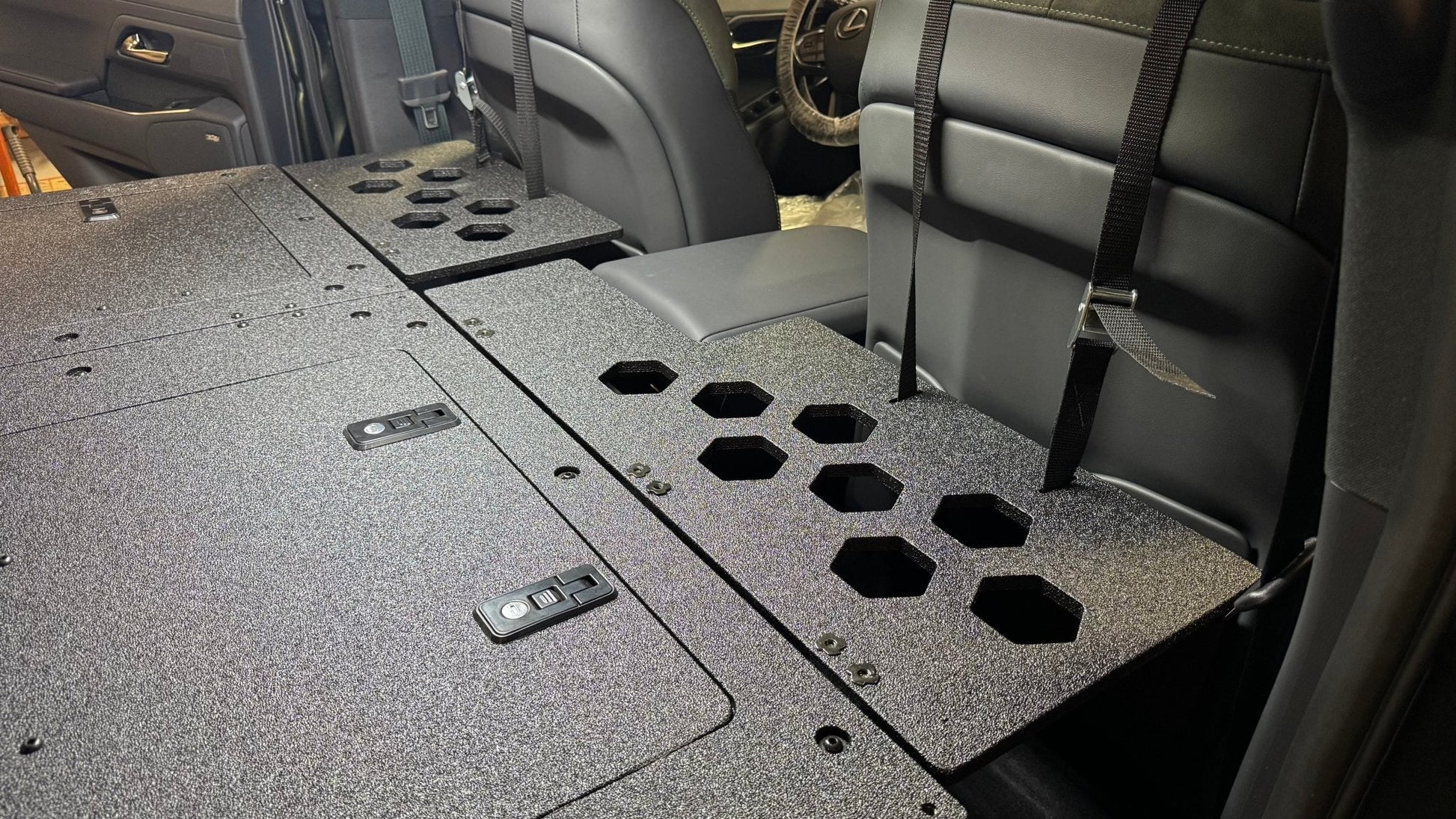 The Lexus GX550 is a wonderful choice for camping and exploring. With this seat delete platform we have created our Second Row Seat Deletes for an easy option to remove the second-row seats, create additional and secure storage, as well as a place to sleep inside your rig. Comes with a pair of pillow extensions for added comfort for those over 6'2" tall.