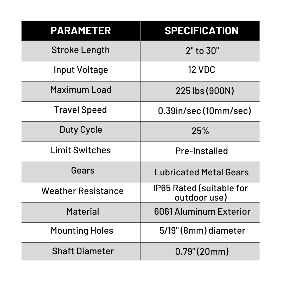 - (2pcs) 12-Volt Linear Actuator (select linear actuator stroke lengths using the drop-down tab)