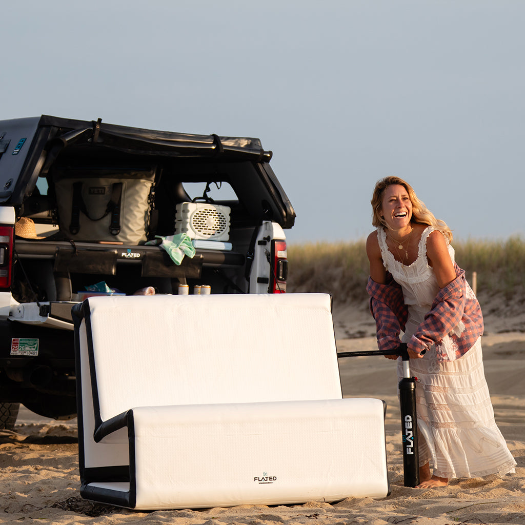 Cozy up anywhere with the FLATED® Air-Exec LoveSeat—an inflatable two-seater designed for outdoor adventure and laid-back lounging. Whether you're camping under the stars, soaking up sun by the pool, or watching waves crash at the beach, this loveseat brings comfort wherever you are. Crafted with rugged drop-stitch technology, it inflates into a firm, supportive seat for two, then deflates and rolls up into its own compact travel bag. Lightweight, durable, and made for the outdoors, the Air-Exec LoveSeat is perfect for couples, friends, or solo sprawl sessions in style.