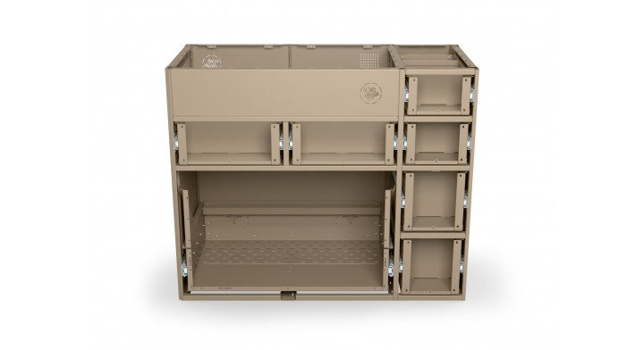 Built for durability, flexibility, and effortless installation, the Moon Kitchen Solid Model 8 is the ideal compact kitchen for Sprinter, Transit, ProMaster, and other adventure vans.