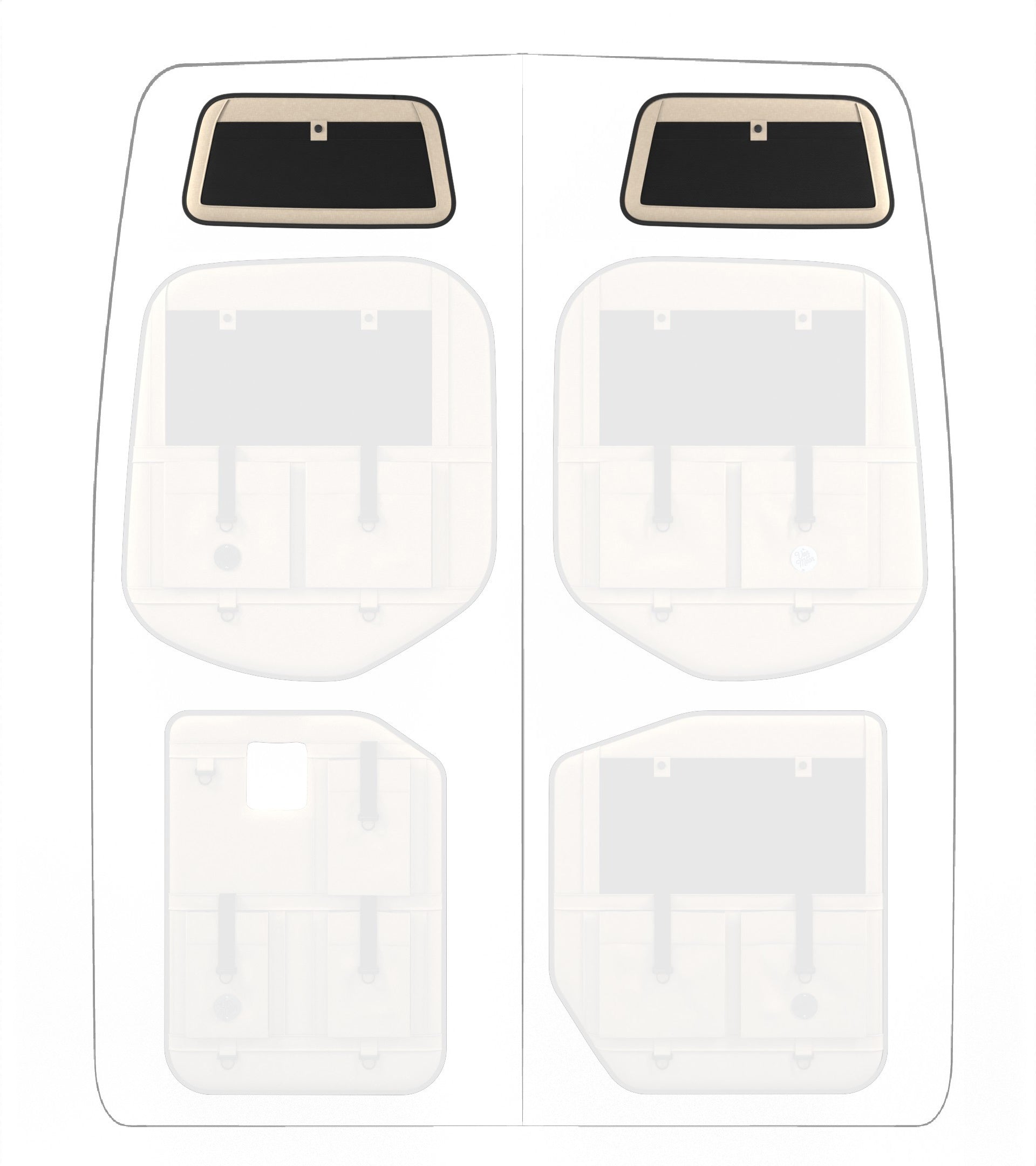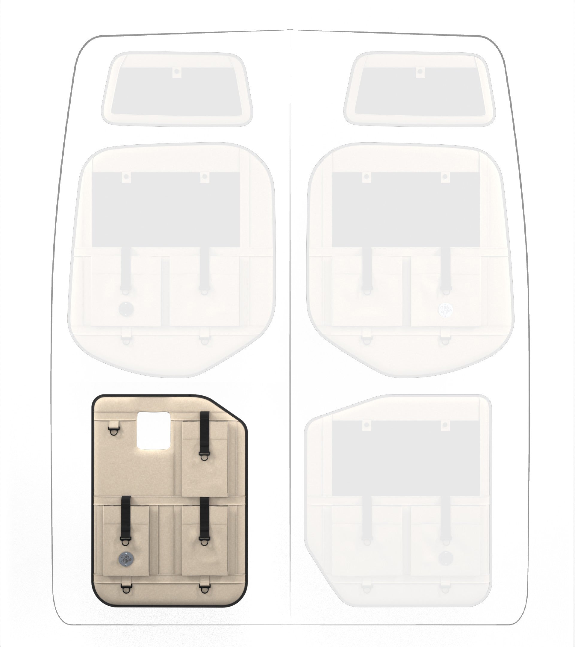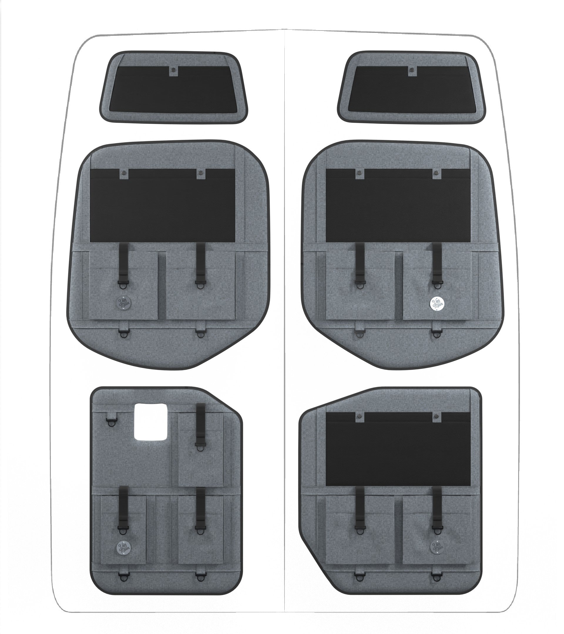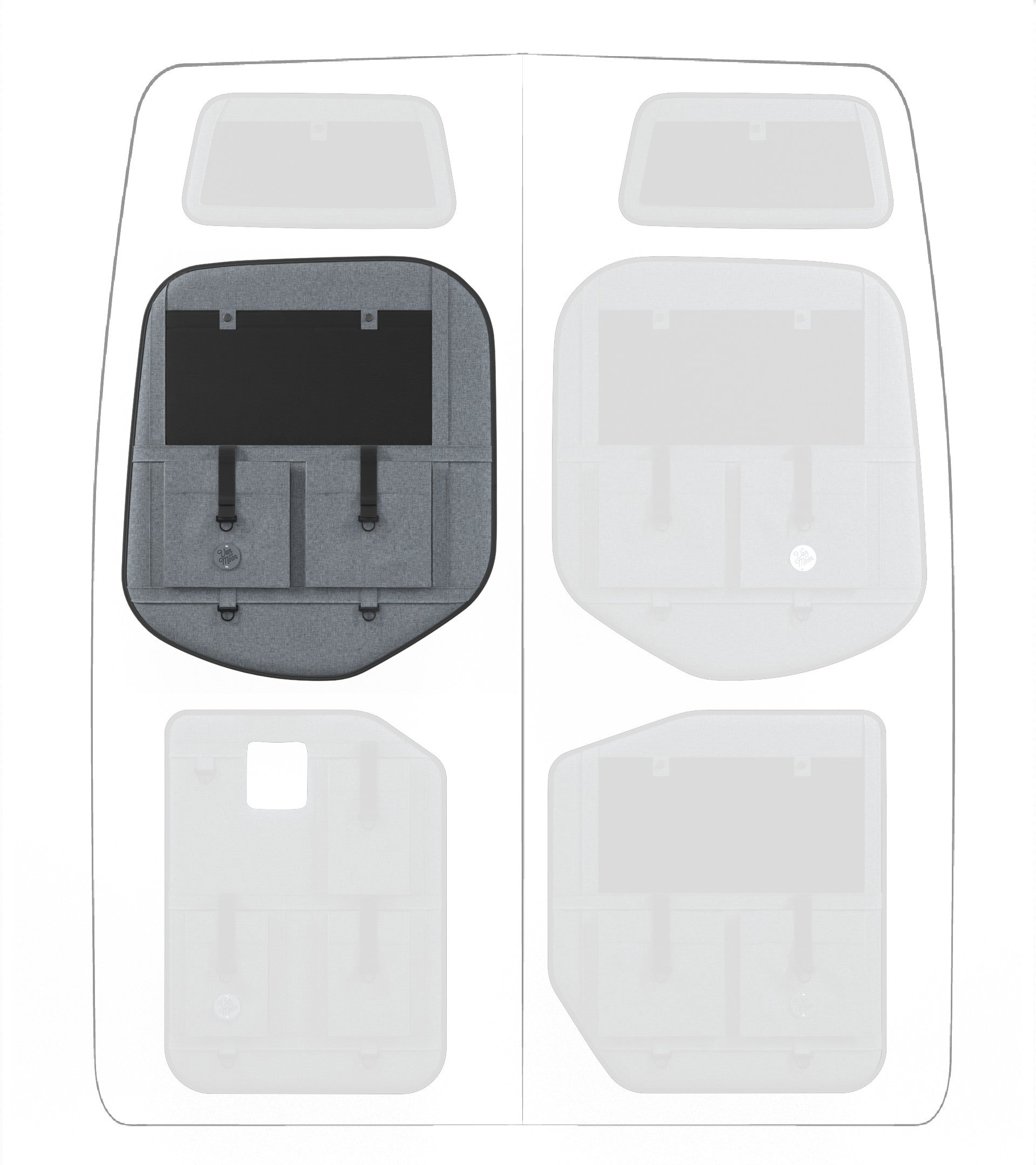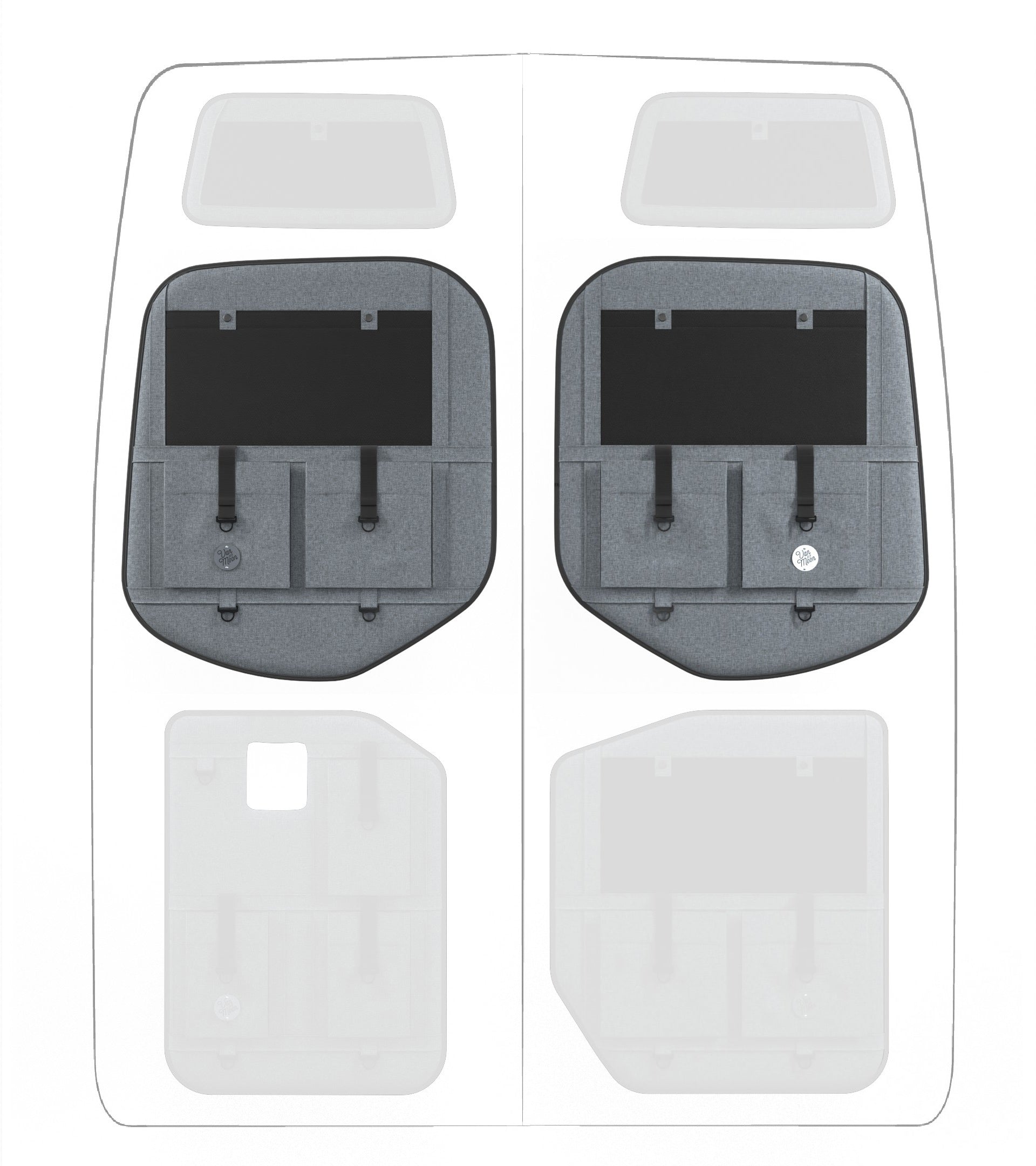 Storage in a van is limited, so why not use your rear doors to expand your space and keep organized? Van Der Moon rear door organizers use a previously ignored space to add functionality and style to your adventure van!