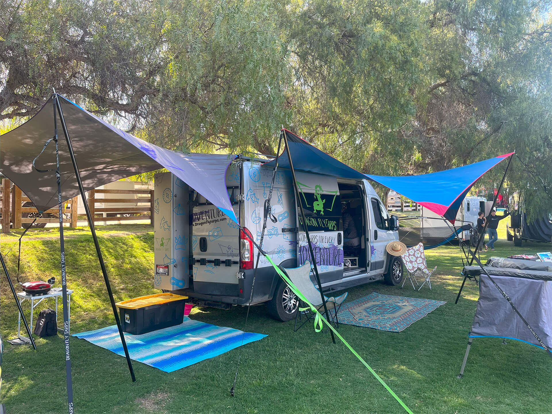 Stay out of the sun and rain while you cook or enjoy your morning view out of your rig.