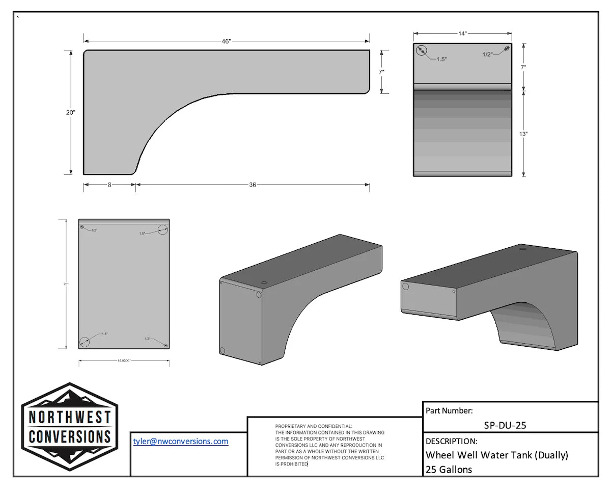 NW Conversions 25 Gallon Dually Wheel Well Water Tank (SP-DU-35)