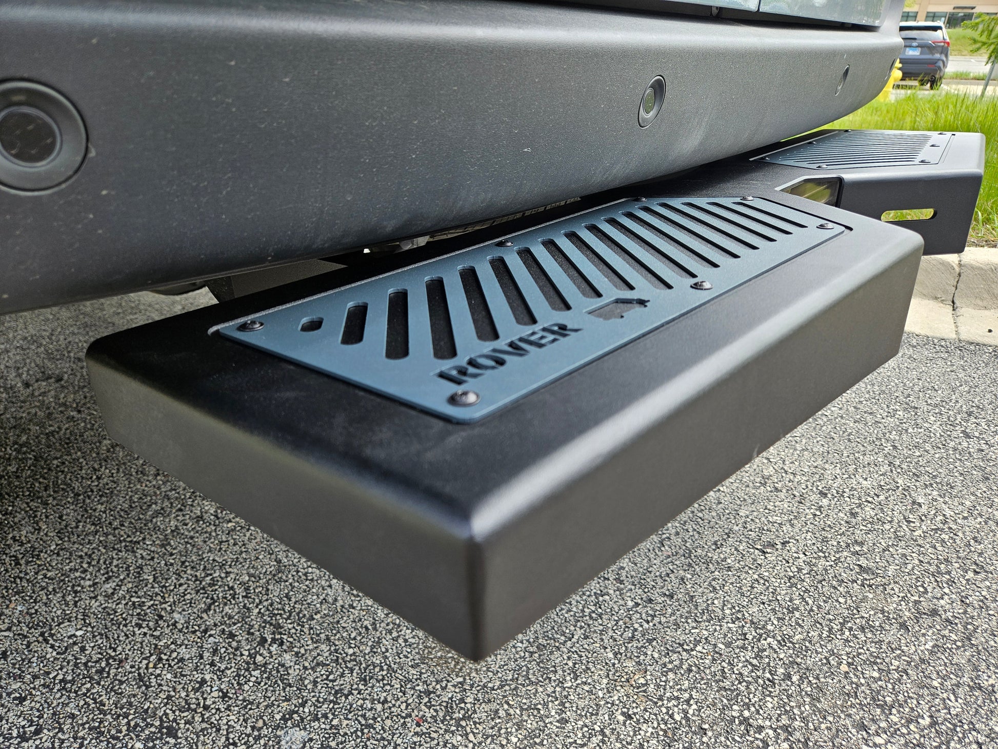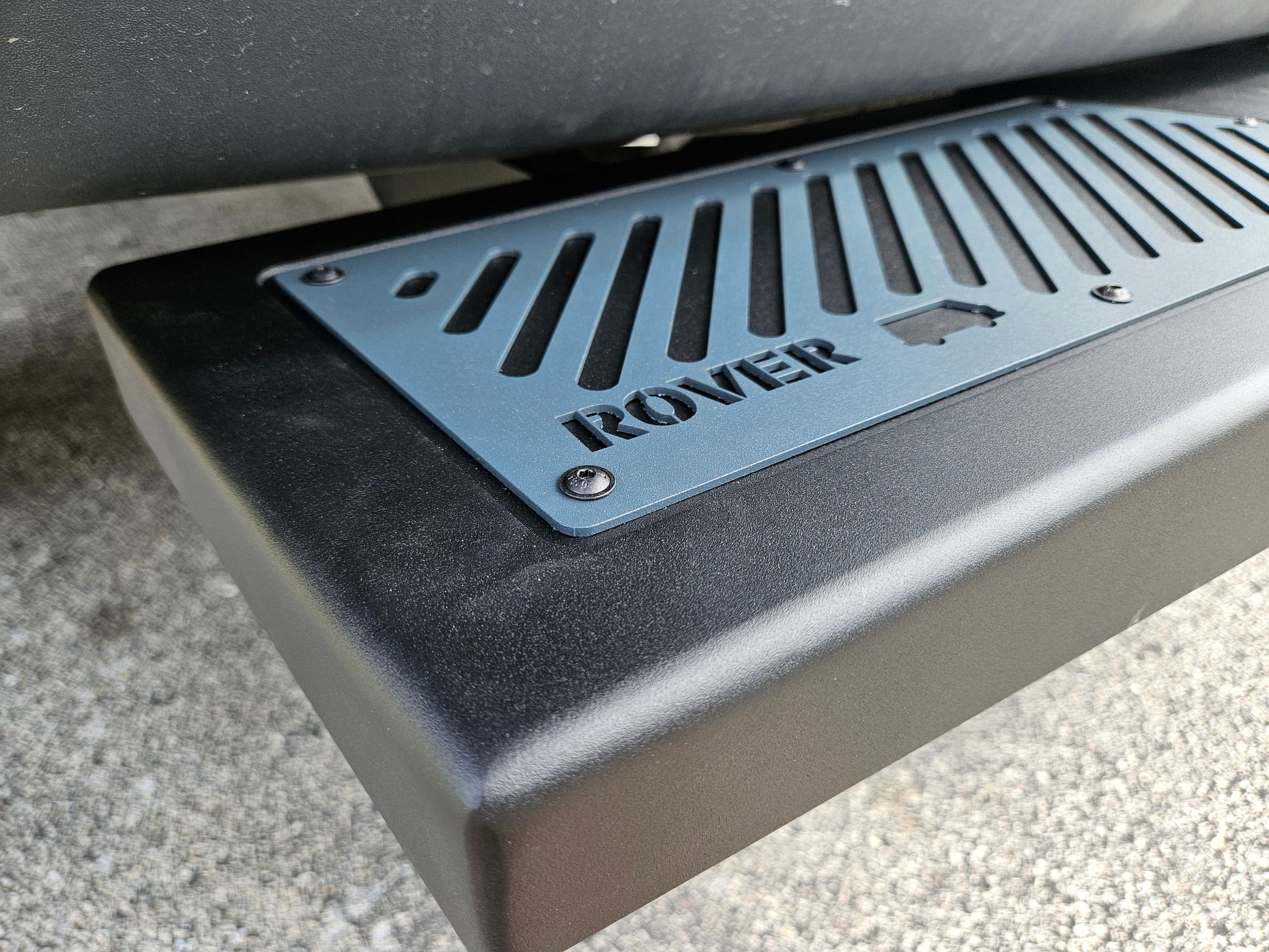 Are you ready to step up with our new Rover Aluminum Rear Step? As most of our products, this step is made from highest grade European aluminum. It is CNC machined, laser cut and tig welded by welding artists. Separate aluminum plates sit recessed inside for added traction and good looks.