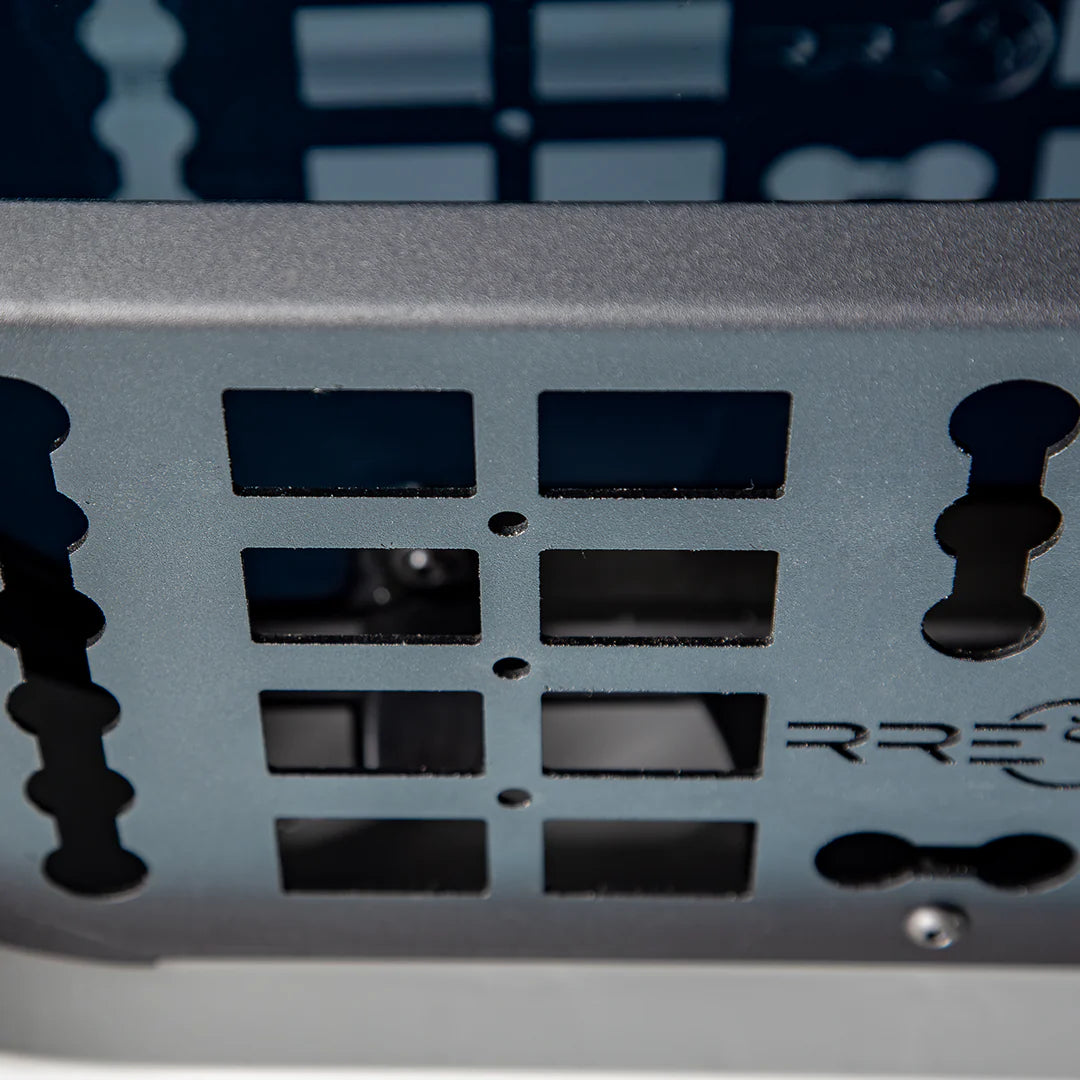 Manufactured from high-grade aluminum alloy (5052), the organizer boasts exceptional strength, wear resistance, and corrosion protection. Its surface is specially treated to prevent fading, bending, and rusting, ensuring durability across various driving conditions and weather. The semi-gloss, textured black Cardinal powder coat adds an extra layer of protection, delivering a rugged yet sophisticated look.