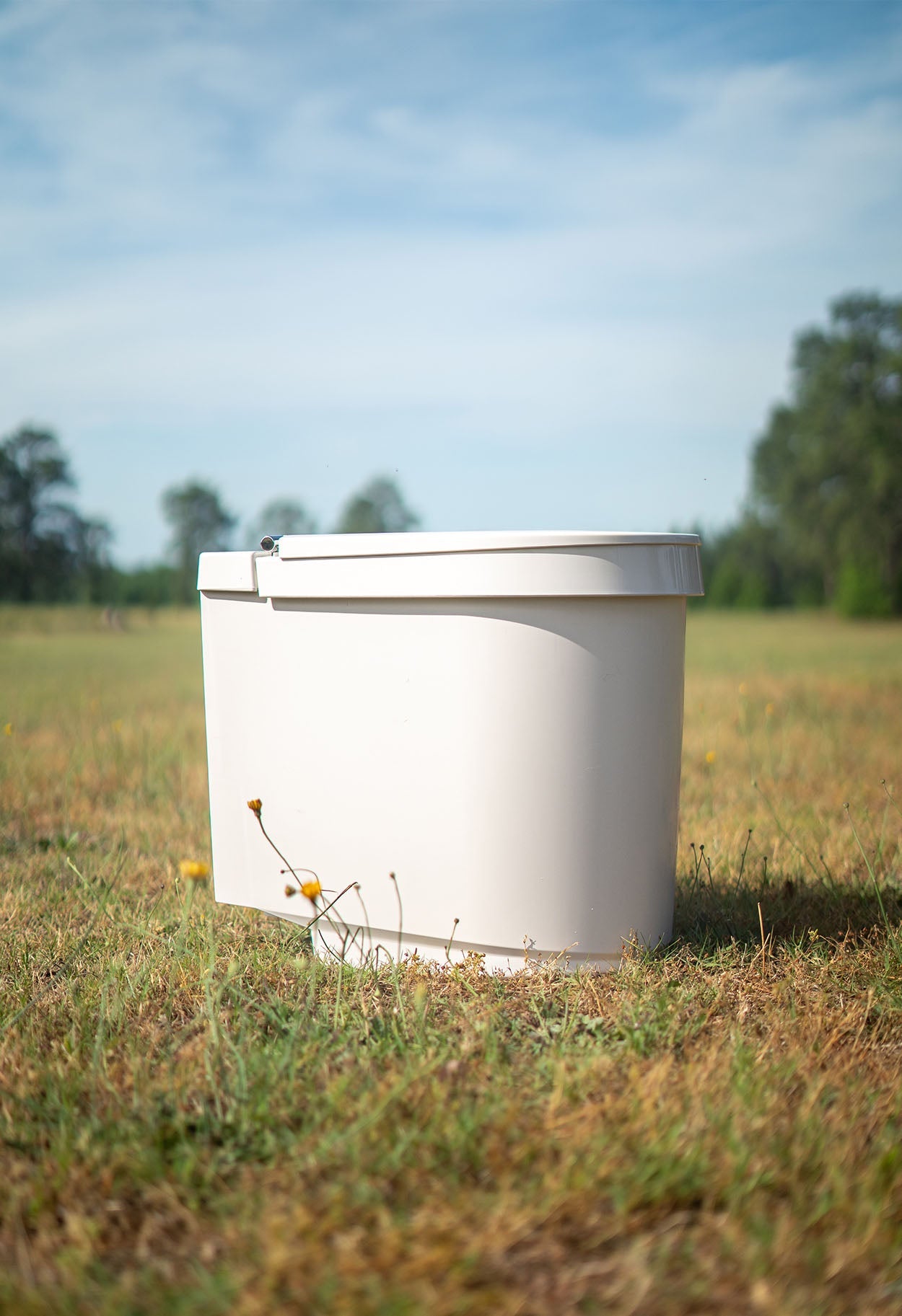 The use of the solids bucket lid, visible in some of the pictures, is often not necessary and is therefore sold separately. You can order it here.