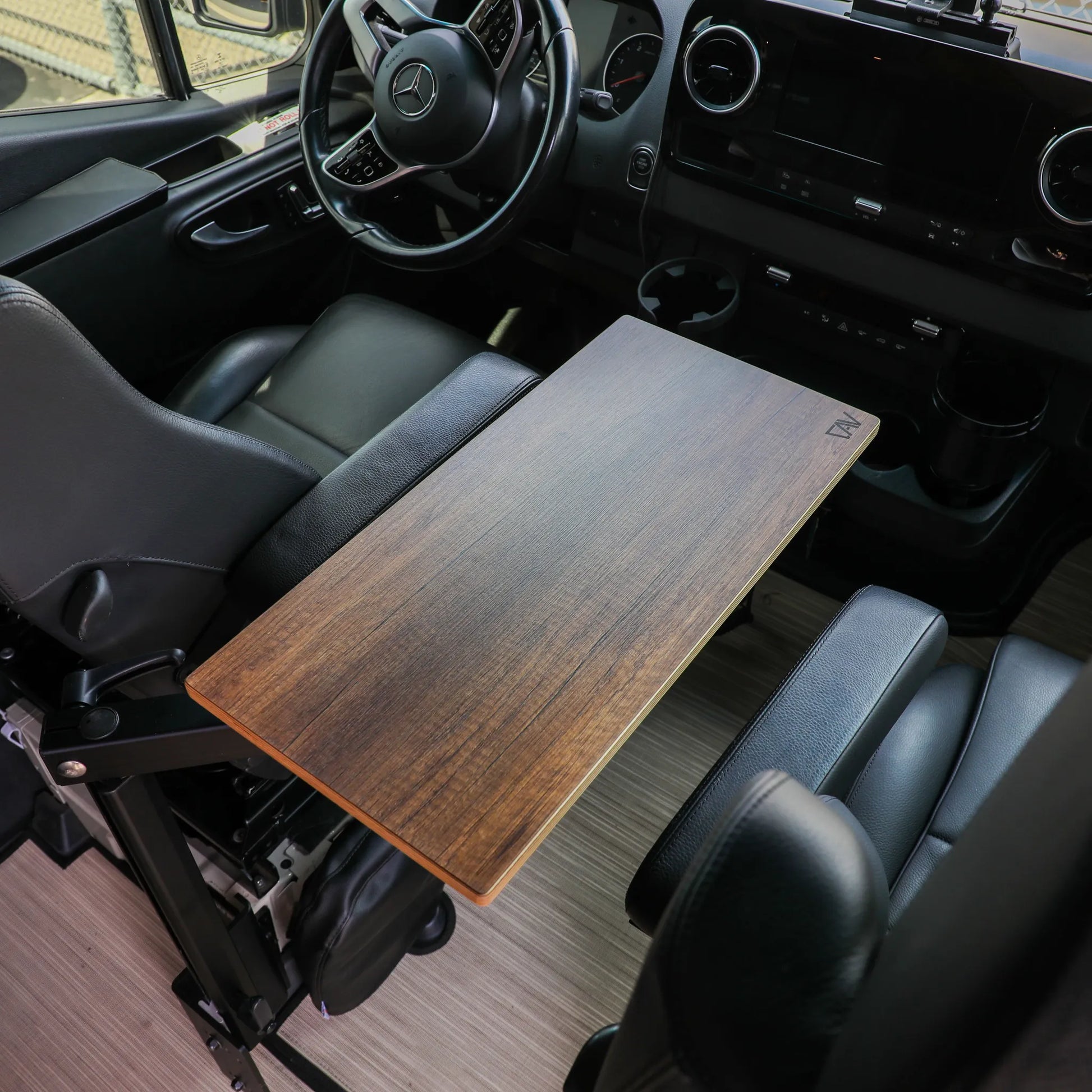 Meet the perfect companion for your van adventures, no matter if you're driving a Van Revel, Storyteller, Jayco, Entegra, or a Sprinter. Our tables are here to add that extra touch of home and functionality to your journeys. Choose from five beautiful finishes, each one crafted to not only look great but to last through all your travels. We know every van is unique, so we've made sure our tables easily fit with both the Lagun system and pedestals, thanks to handy threaded inserts. Whether you're sharing a meal, plotting your next route, or just need a sturdy place to rest your coffee cup, these tables are your go-to.