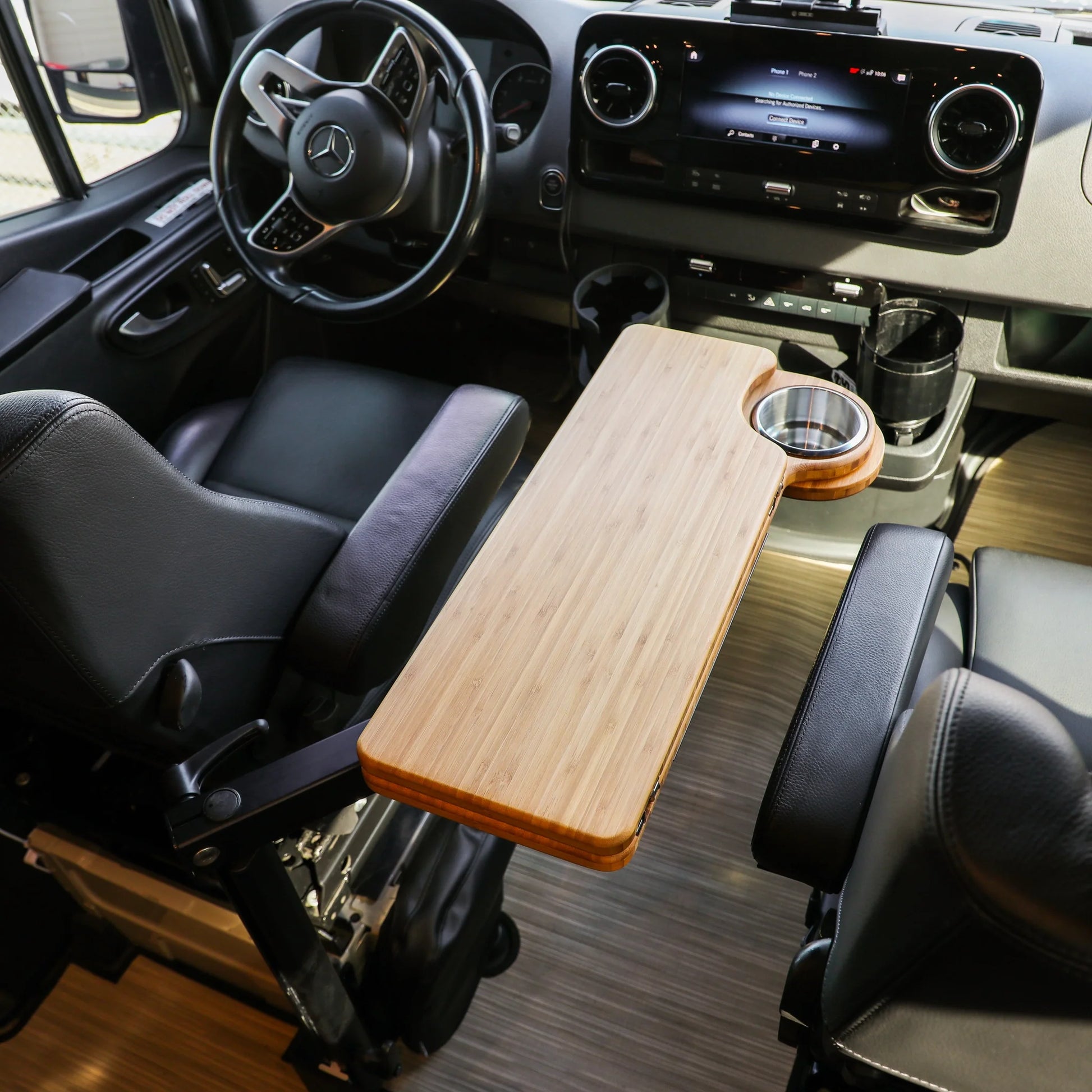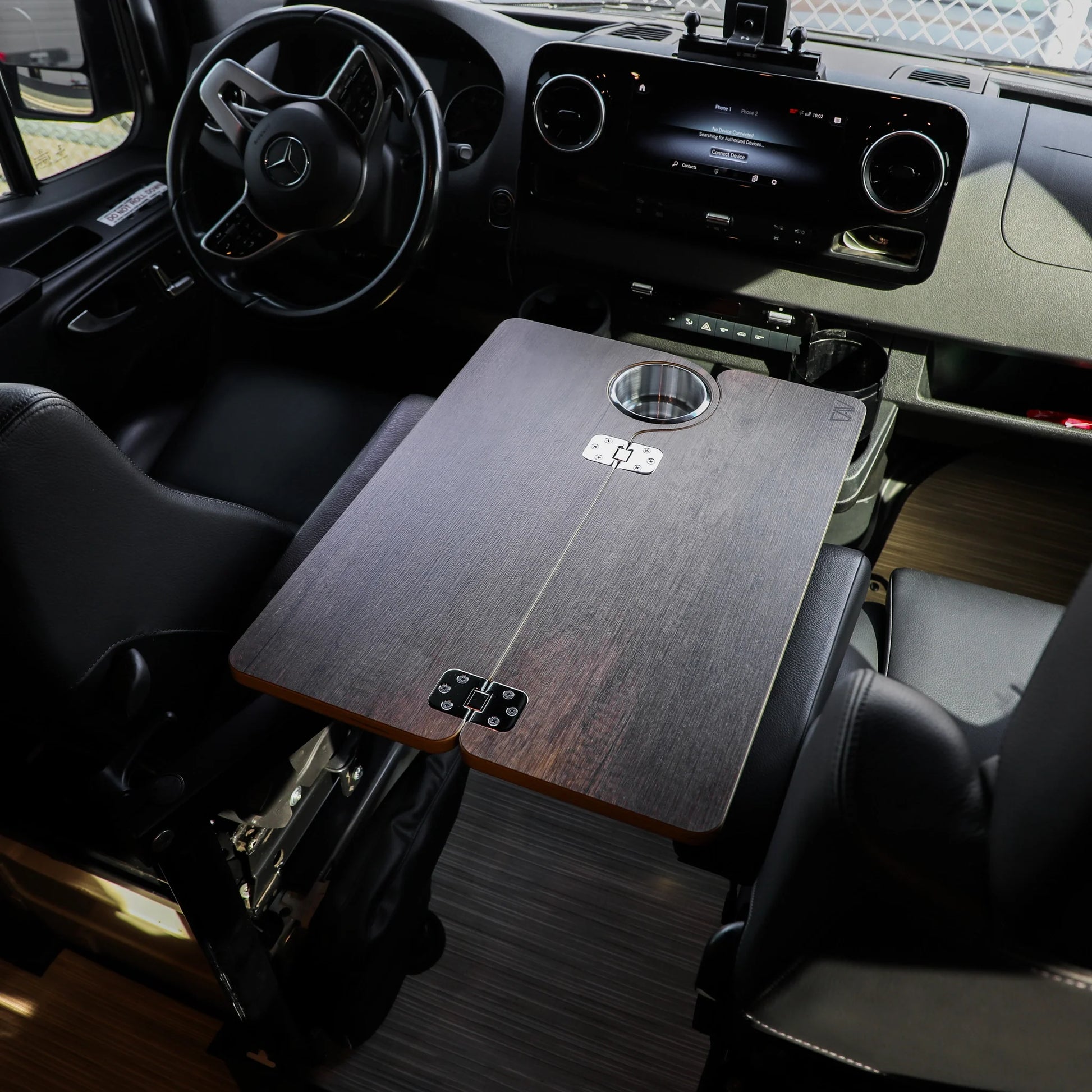 Meet the perfect companion for your van adventures, no matter if you're driving a Van Revel, Storyteller, Jayco, Entegra, or a Sprinter. Our tables are here to add that extra touch of home and functionality to your journeys. Choose from five beautiful finishes, each one crafted to not only look great but to last through all your travels. We know every van is unique, so we've made sure our tables easily fit with both the Lagun system and pedestals, thanks to handy threaded inserts. Whether you're sharing a meal, plotting your next route, or just need a sturdy place to rest your coffee cup, these tables are your go-to.