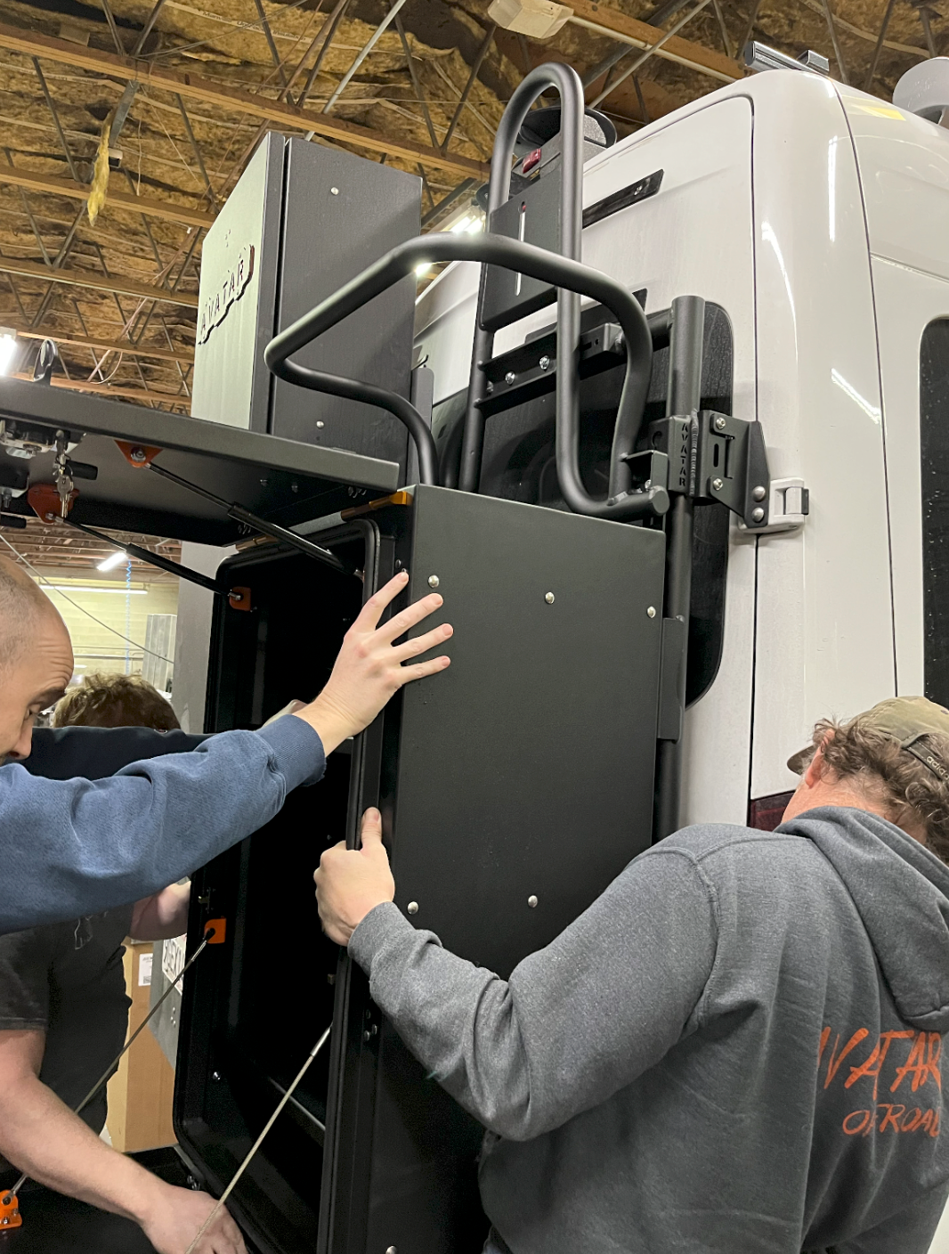 Our Massif Mounting Solution is not only perfect for holding your storage boxes and allowing roof access, but with this accessory it is the optimal product to also mount your spare tire! This spare tire carrier is ideal for anyone wanting to utilize the van’s rear door, without compromising all of your door’s space! Easily fit this carrier above an Avatar storage box to have the best of both worlds!