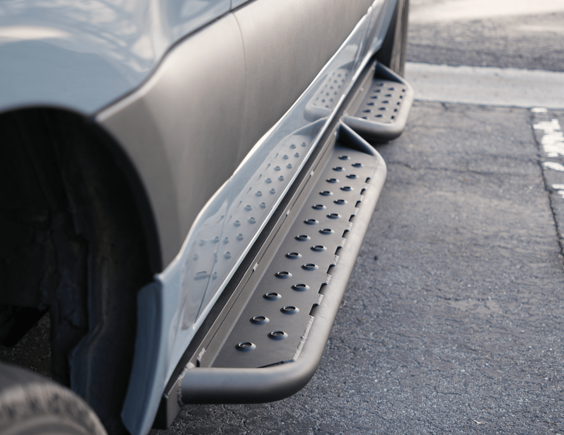 Available for 144” Mercedes Sprinter models, these side steps feature dimpled Die plates for superior traction in any weather and heavy-duty tubing that holds up to real-world adventure. The driver side includes a traction step that stops short of the rear wheel arch for side ladder compatibility, while the passenger side features a longer 54" step designed to provide you a full coverage to getting in and out.