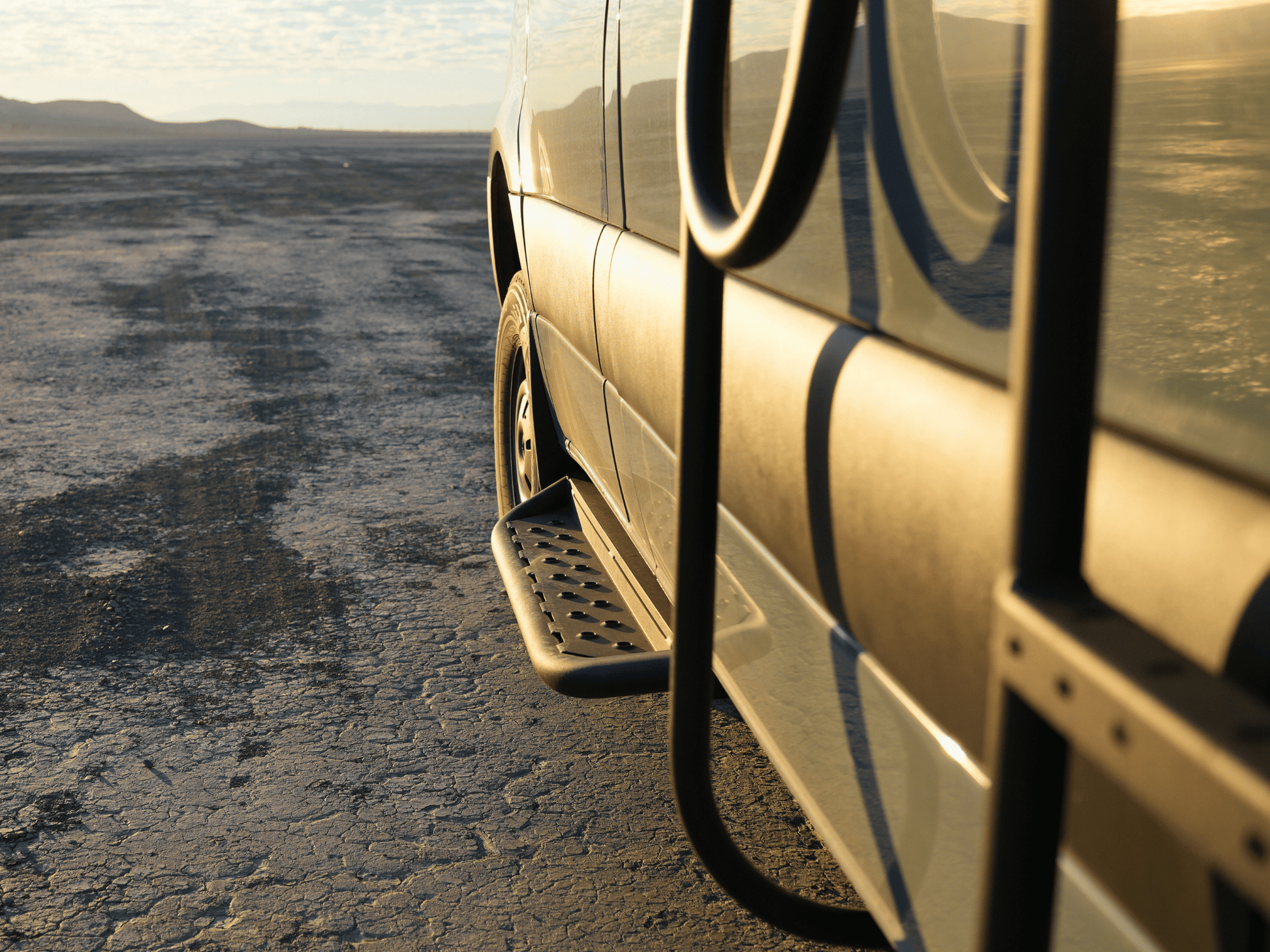 Make getting in and out of your van a breeze with the White Top Adventures Sprinter Van Side Steps — built for those who live life on and off the road. Designed to enhance both the look and functionality of your van, these side steps add aggressive styling, extra protection, and practical convenience.