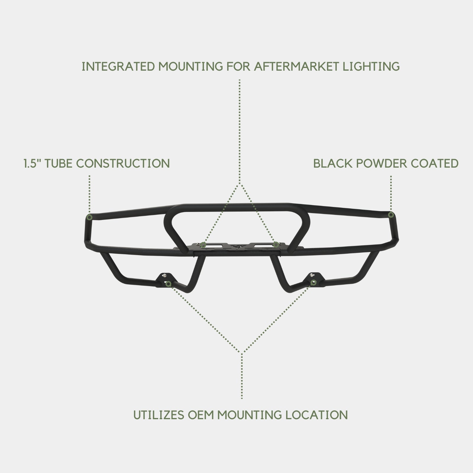 - Utilizes factory mounting locations atop the vehicle’s bumper cover & (no additional drilling / modification required)