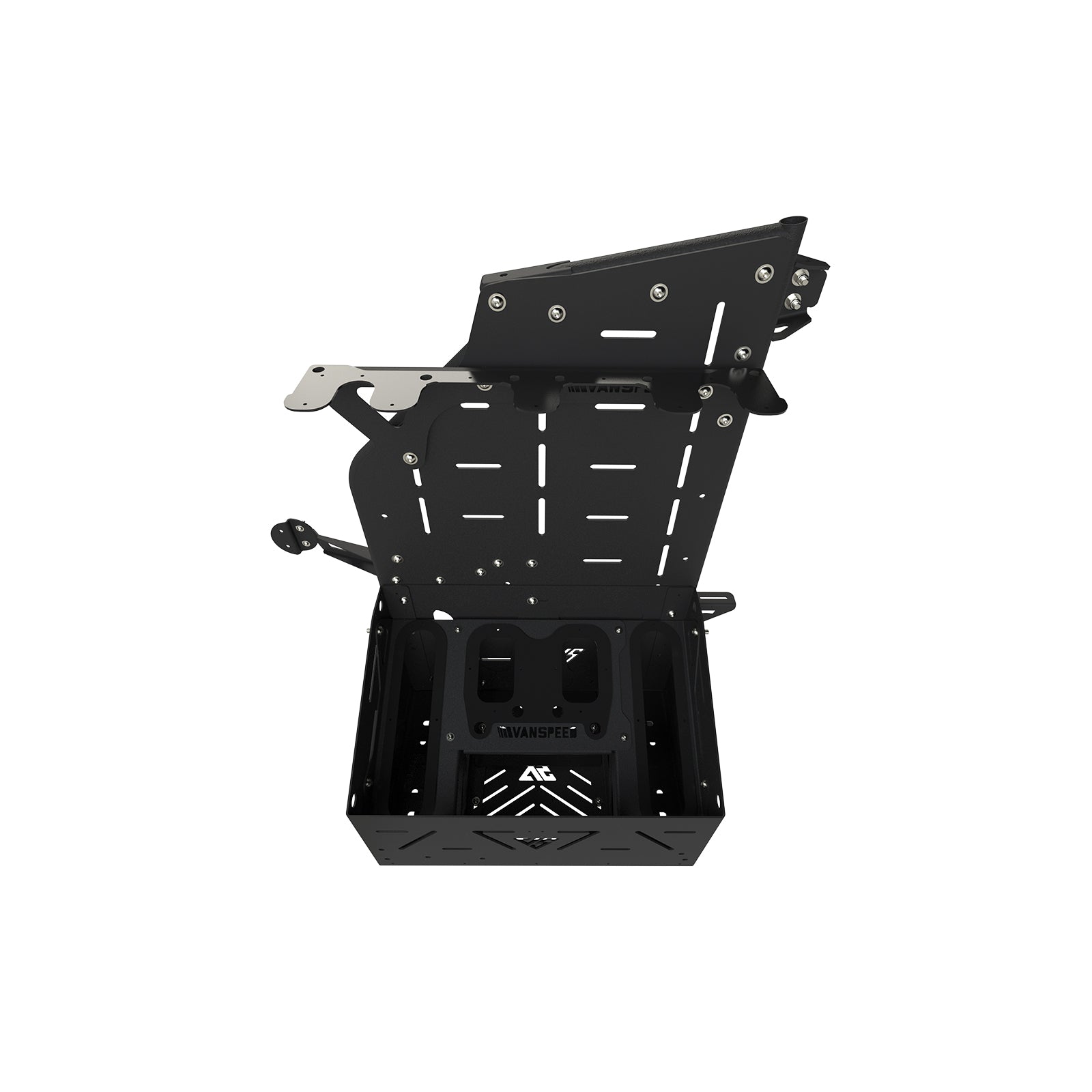 - Rack is constructed from a combination of ⅛” sheet steel w/ a textured black powder-coat finish and ⅛” sheet ABS w/ a semi-gloss black finish