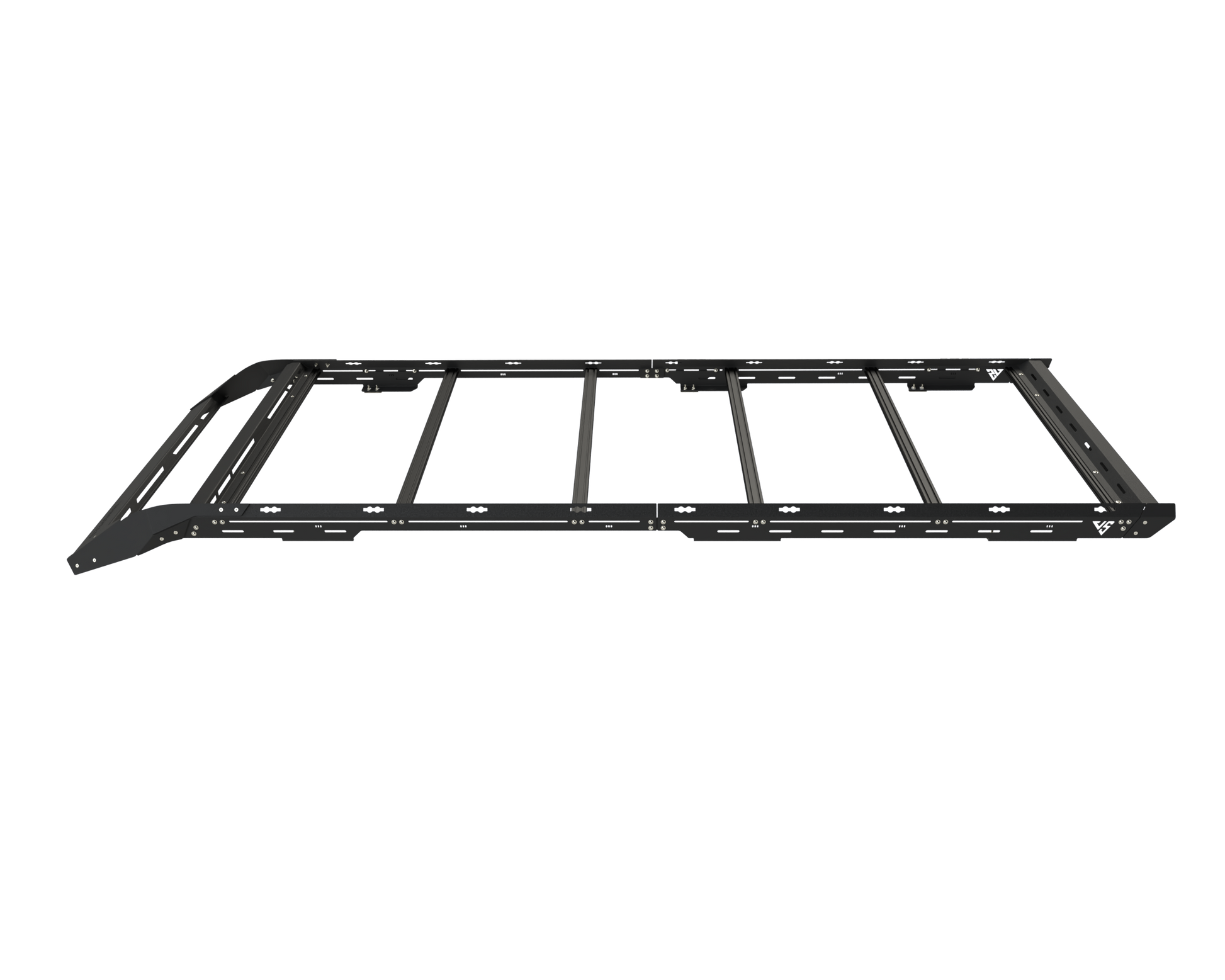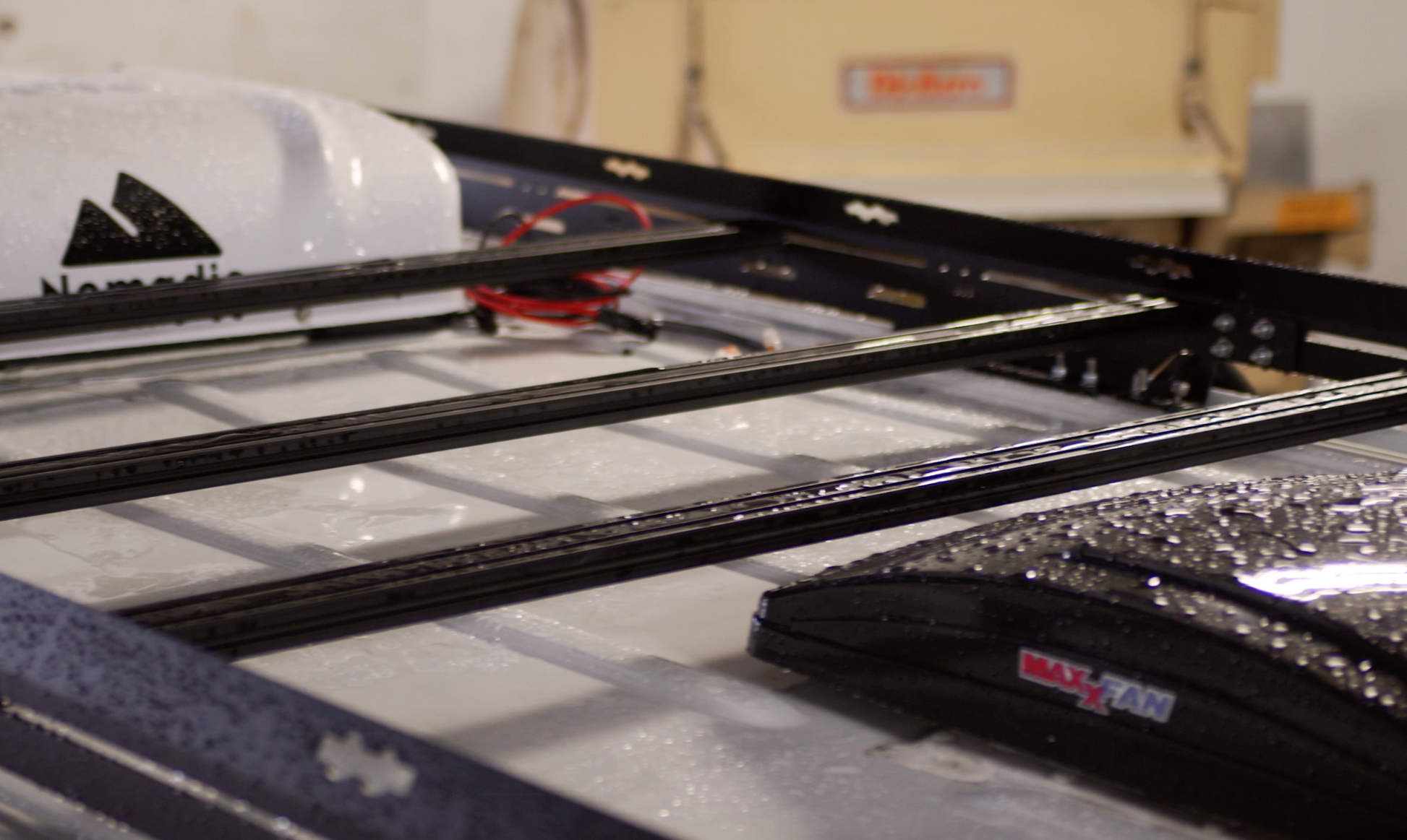 This Scout Rack 144 has everything you need up top, including a multi-piece outer frame, aluminum extruded crossbars, roof rail sliders, Fiamma awning adapter plates, and all the hardware necessary for assembly & installation. (All other third-party accessory components like lights,decking,solar,etc. are sold separately)