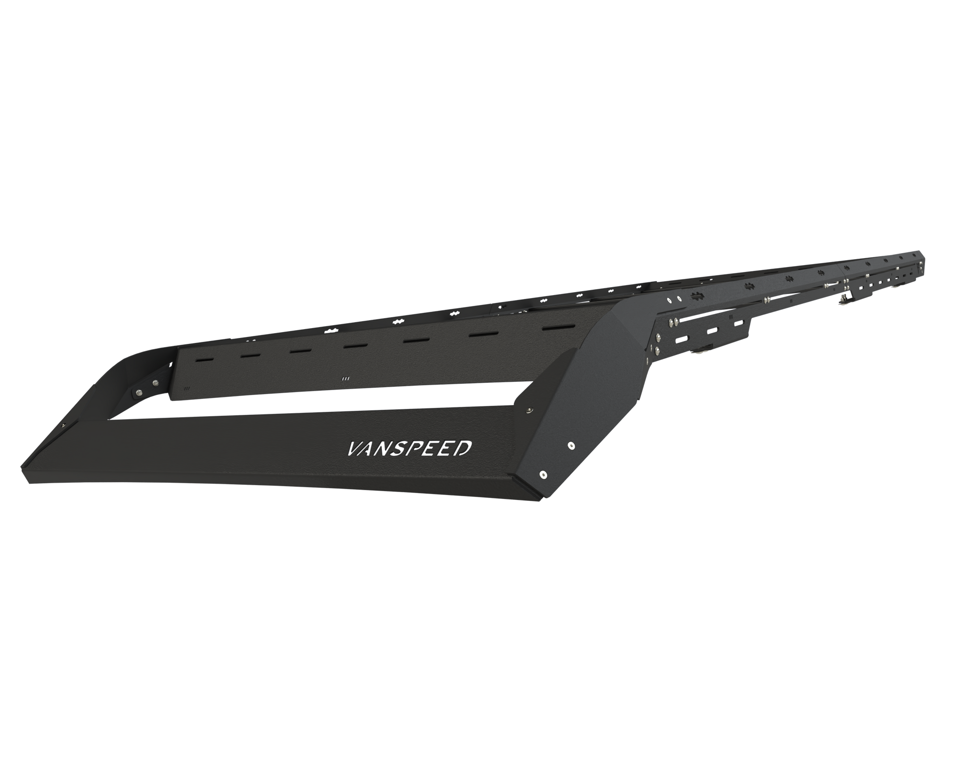 Increase your cargo capacity without compromising style or performance. The Vanspeed Sprinter-Scout Rack offers a sleek, modular, and aerodynamic solution for roof-mounted storage and accessories. Designed with configurable aluminum crossbars, it adapts to your setup—whether you need space for gear, lighting, or other adventure essentials. Built for both function and aesthetics, this rack enhances your van’s utility while maintaining a streamlined look.