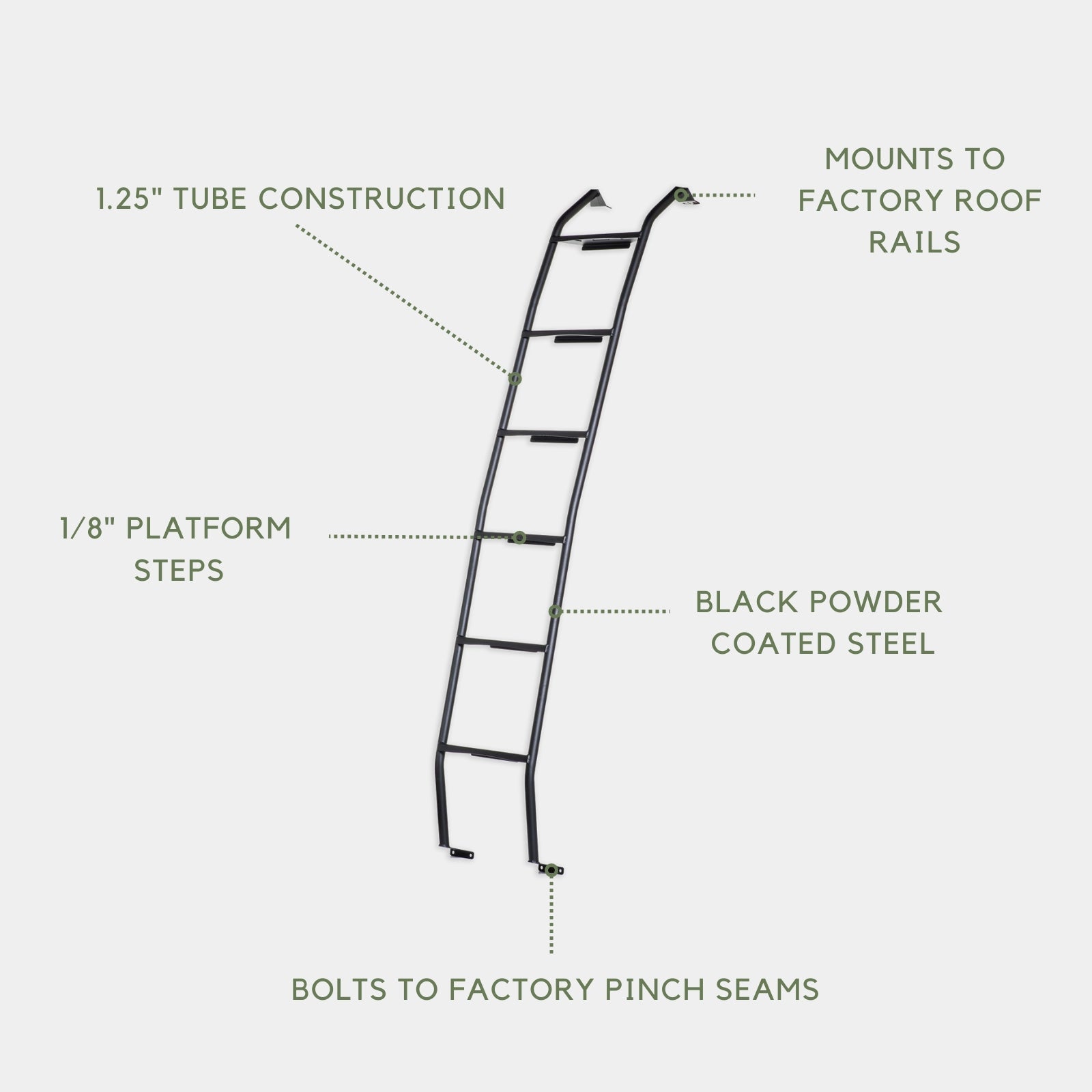 This product provides ease of access to the roof area of your vehicle for additional equipment storage & field surveying applications. Included with your purchase of the Sprinter Side Ladder is the ladder itself, as well as all of the hardware & mounting brackets necessary to secure the ladder into place on the side of your vehicle.