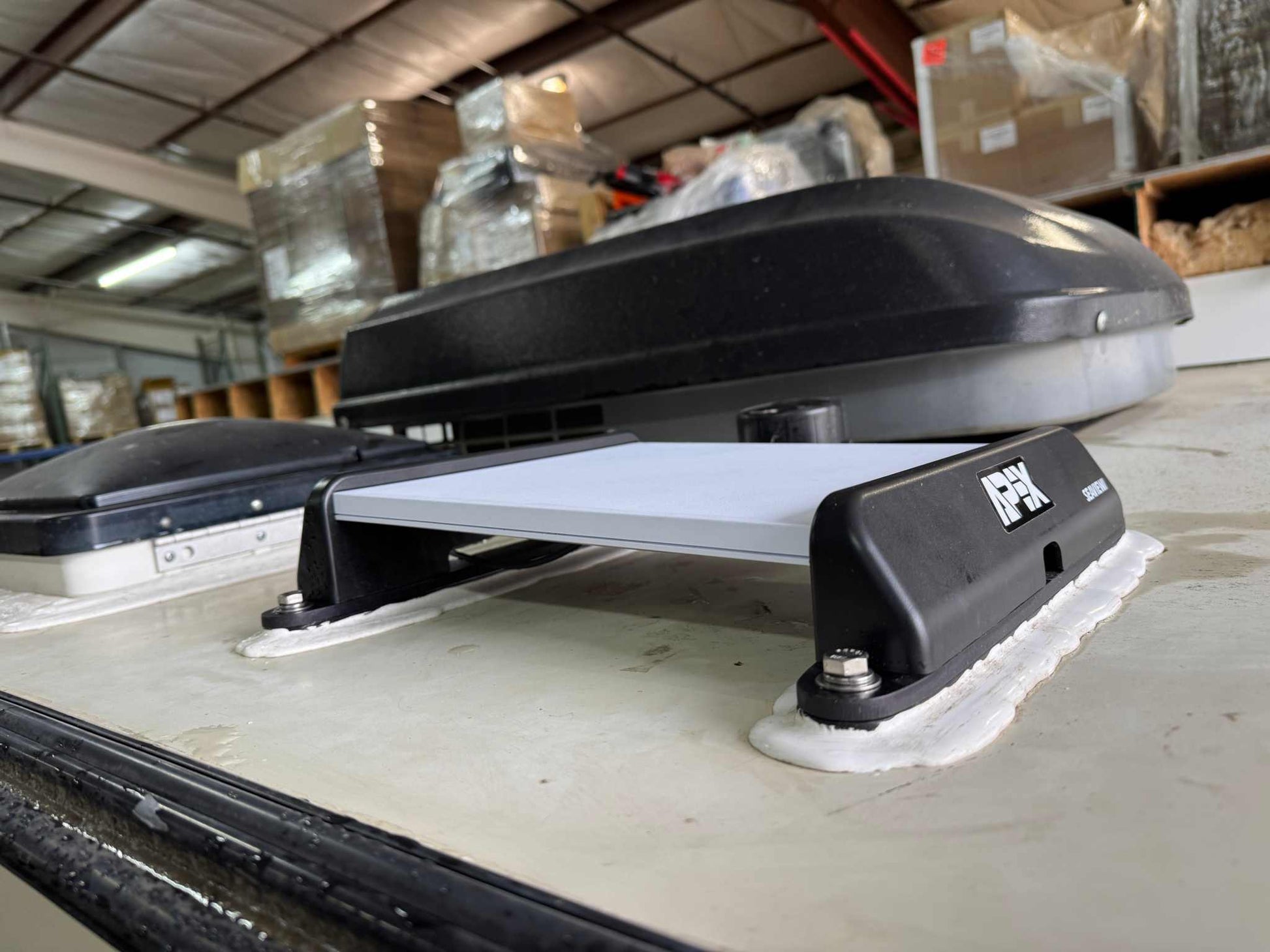 The APXMDM features end caps made from injection-molded ASA, renowned for its UV and weather resistance, toughness, and aesthetic quality. These end caps are securely attached to black hard-anodized aluminum strips, providing the strength needed to firmly mount the Starlink Mini antenna on any flat surface, whether stationary or in motion.