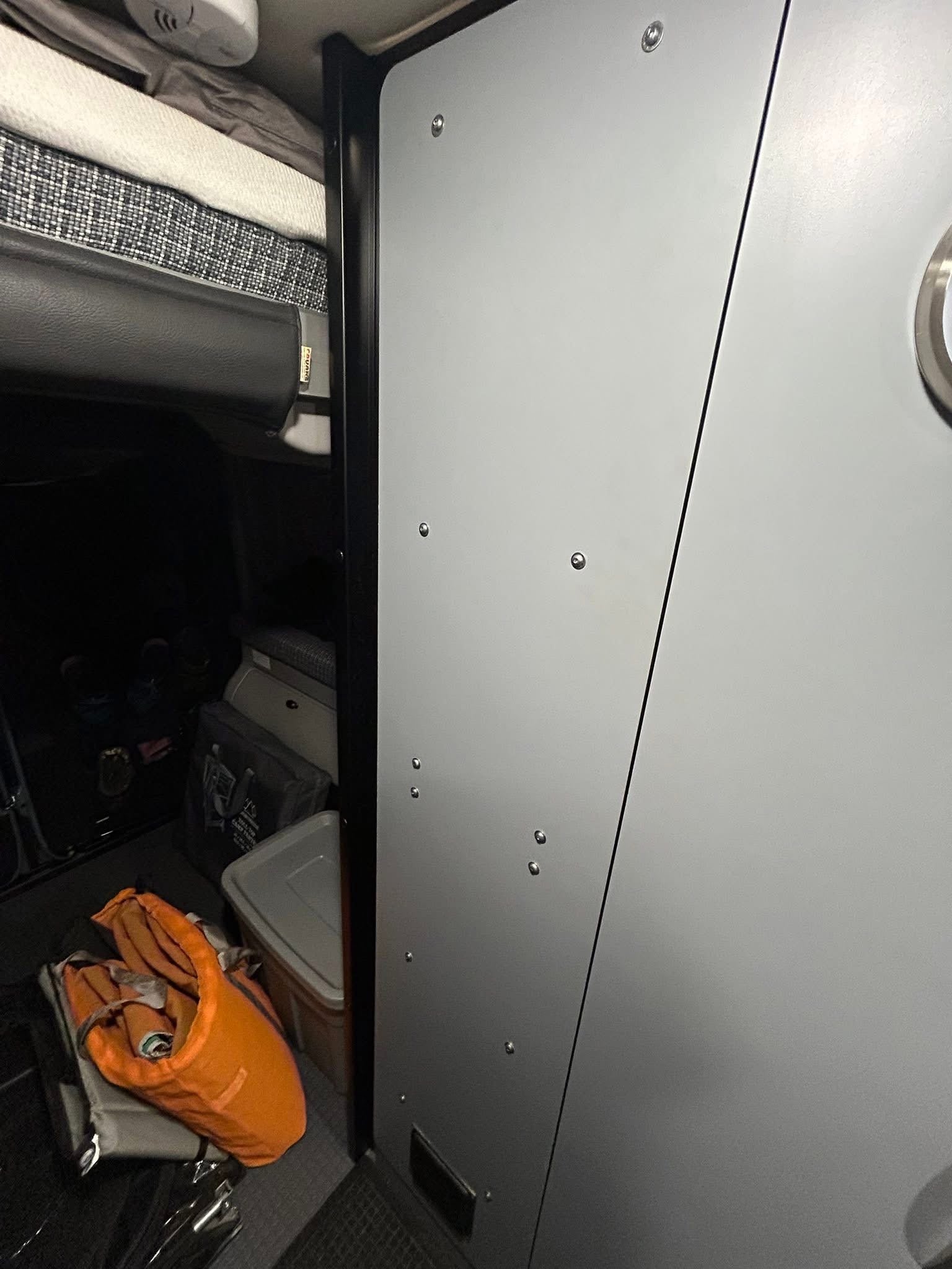 We found in our revel, that there was a huge amount of wasted space on the front and back of the shower door. We decided to create an aluminum Molle Panel that allows you to Use that space to store things.