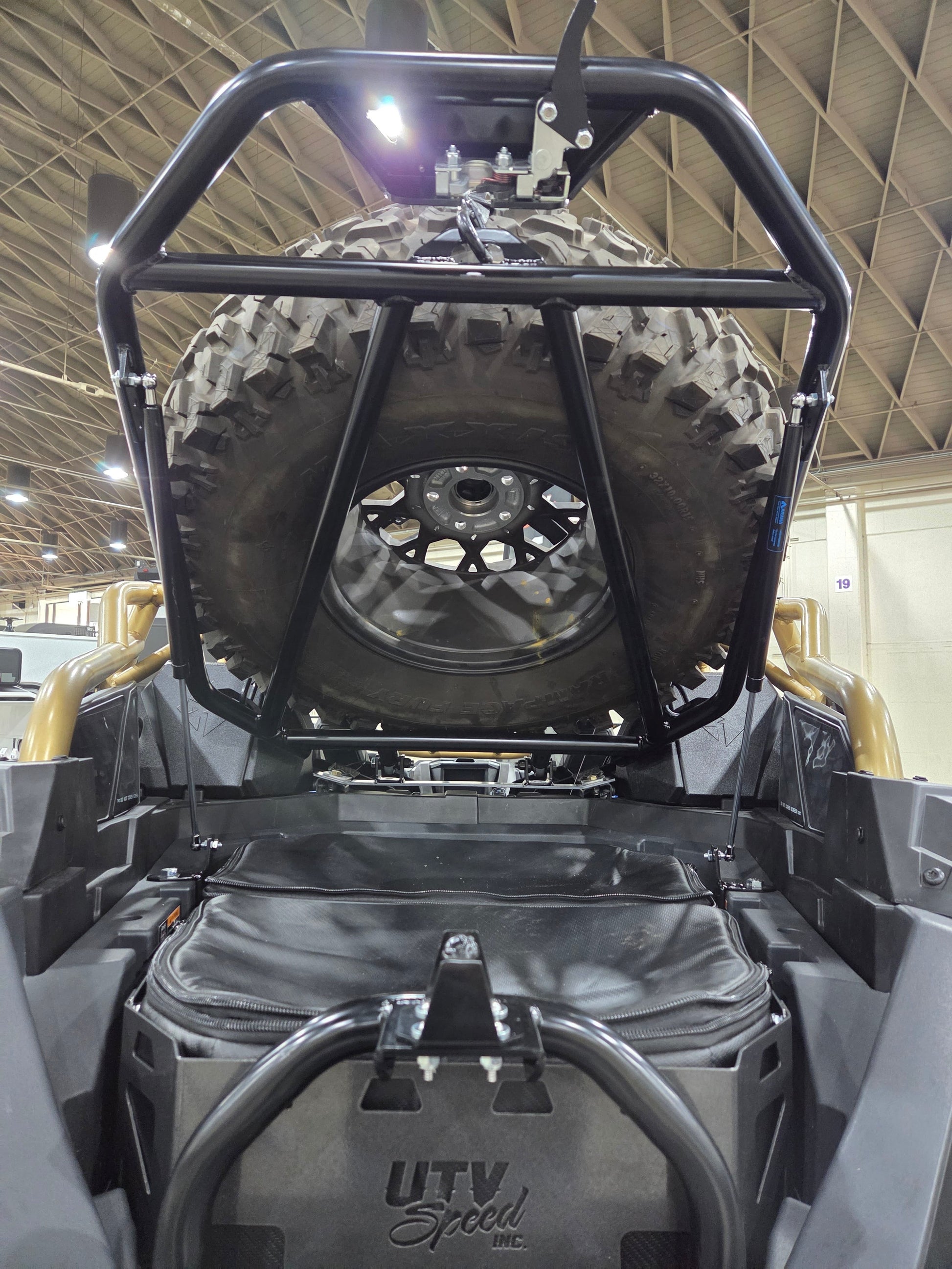 Here is our UTV Speed Tire Carrier with Shocks for the Polaris Pro R.
