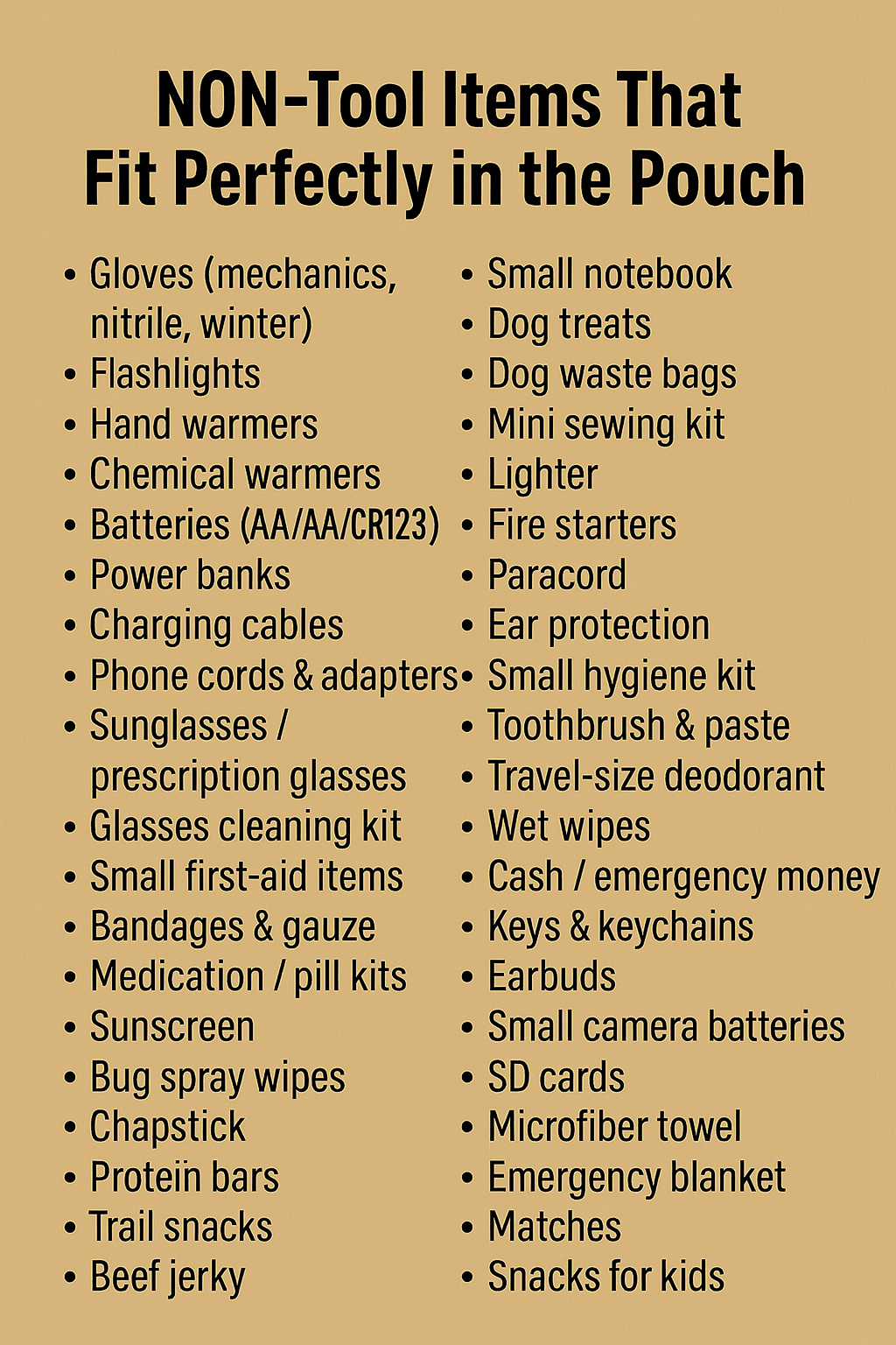 Keep your tools and gear organized and accessible with our Tool Pouch. This durable and versatile pouch is perfect for storing a variety of items, including: