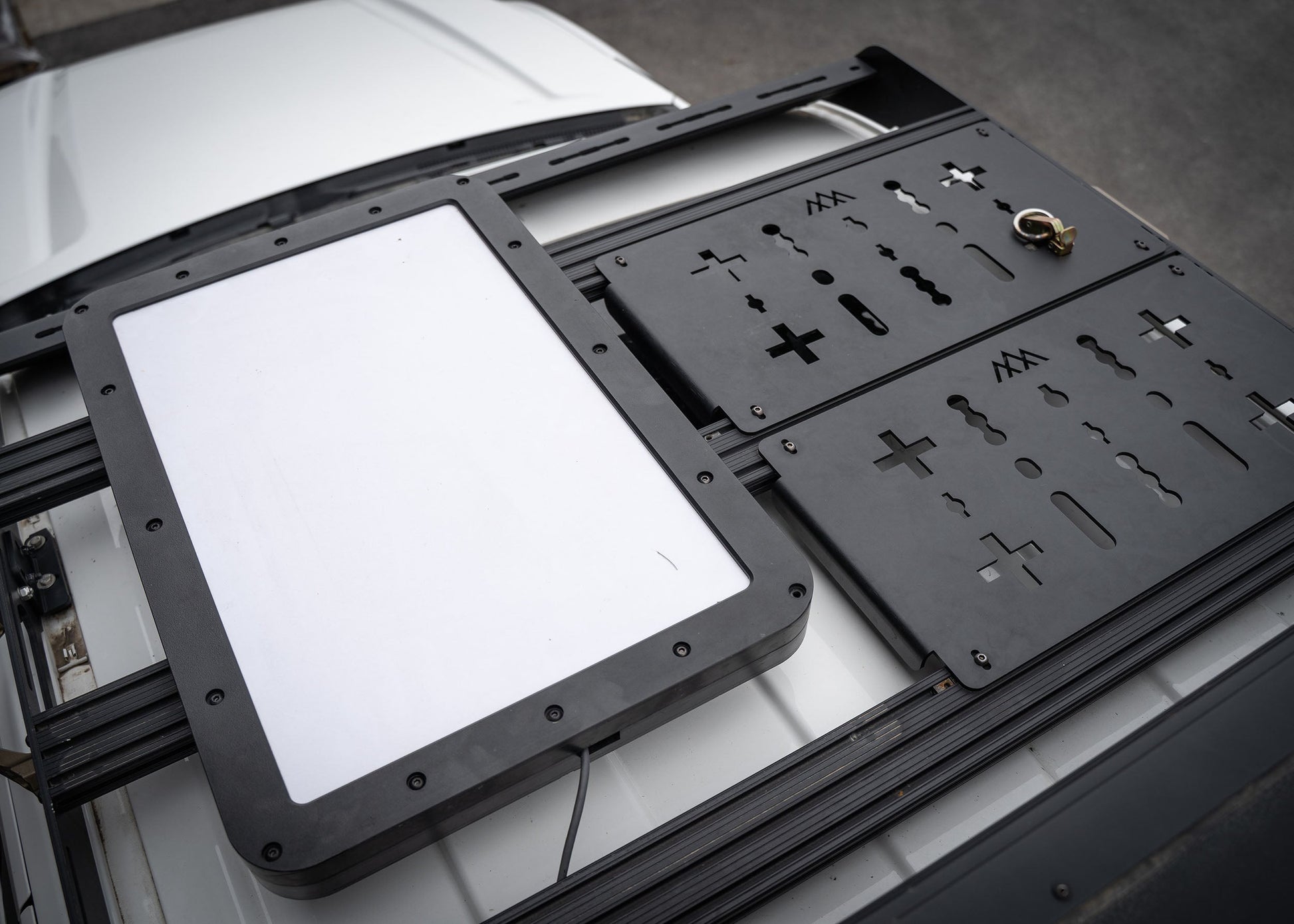 Our DRIFTR series roof rack for the 4th gen Toyota Tacoma not only gives you tons of added utility, but it unlocks an ecosystem of customization options to fully dial in your rig. Our racks are modular, light weight, super tough, have a low profile, install quickly, allow easy customization, have provisions for front and rear lighting, and ship cheap directly to your door. Dial in your rack exactly how you want it with our Universal Accessory Deck Panels and Awning Brackets.