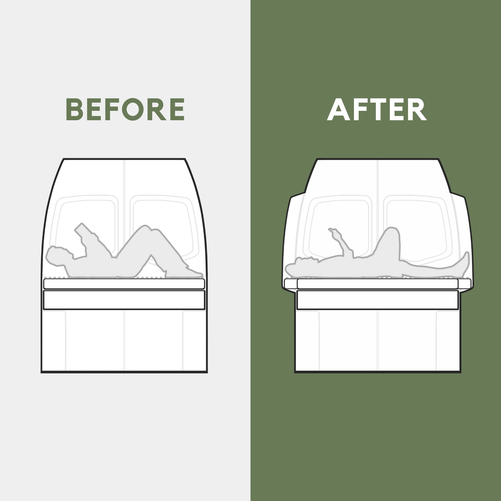 Introducing the Vanspeed Capsules – your answer to extended sleeping space without the hassle. Crafted from durable lightweight fiberglass, these capsules add up to 6+ inches of vital head-to-toe sleeping area. Their aerodynamic design and precise body fitment ensure a seamless integration with your Sprinter van. Perfect for the do-it-yourself enthusiast or the seasoned professional installer, these capsules are designed for a straightforward setup, ensuring you're ready for the road with ease and comfort.
